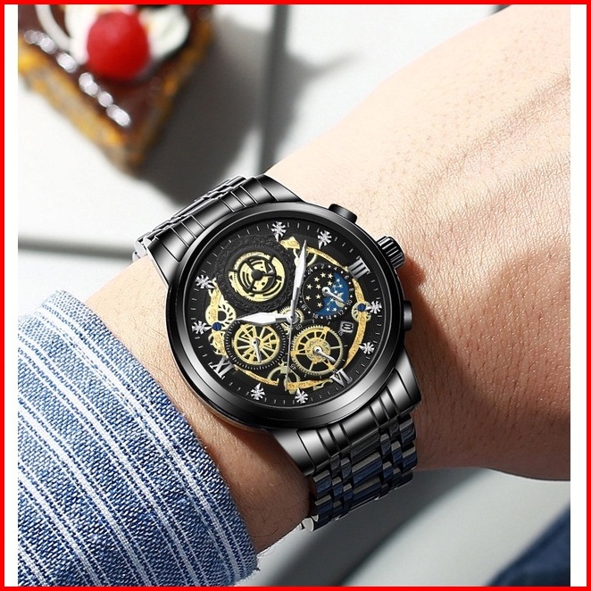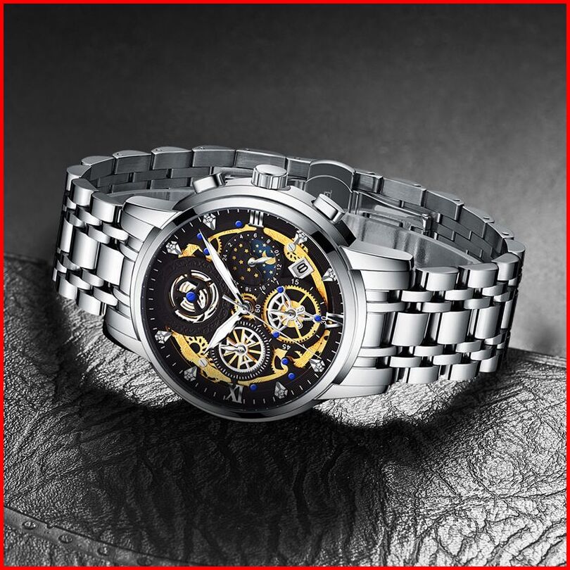 Jam Tangan Pria Rolex Rx-9124 Luxury Tanggal Aktif Stainless Steel Anti Air Include Box Jam Tangan Rolex Skeleton Lumino