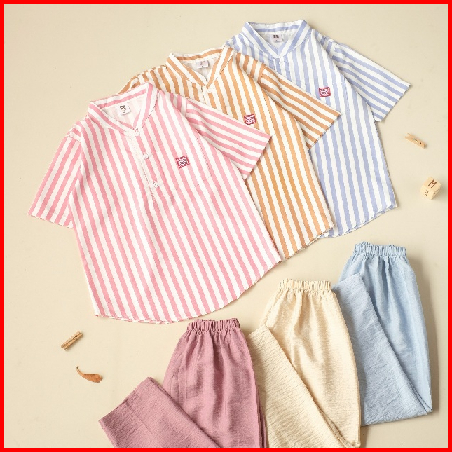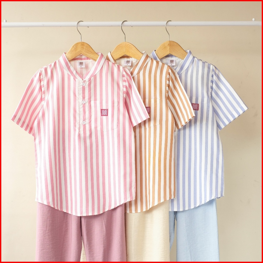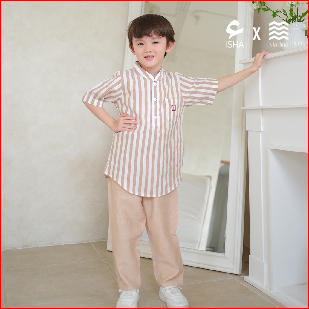 Madina Musa - Baju Setelan Koko Anak Laki Laki 1-12 Tahun Motif Salur Lengan Pendek Kurta Muslim Garis-garis
