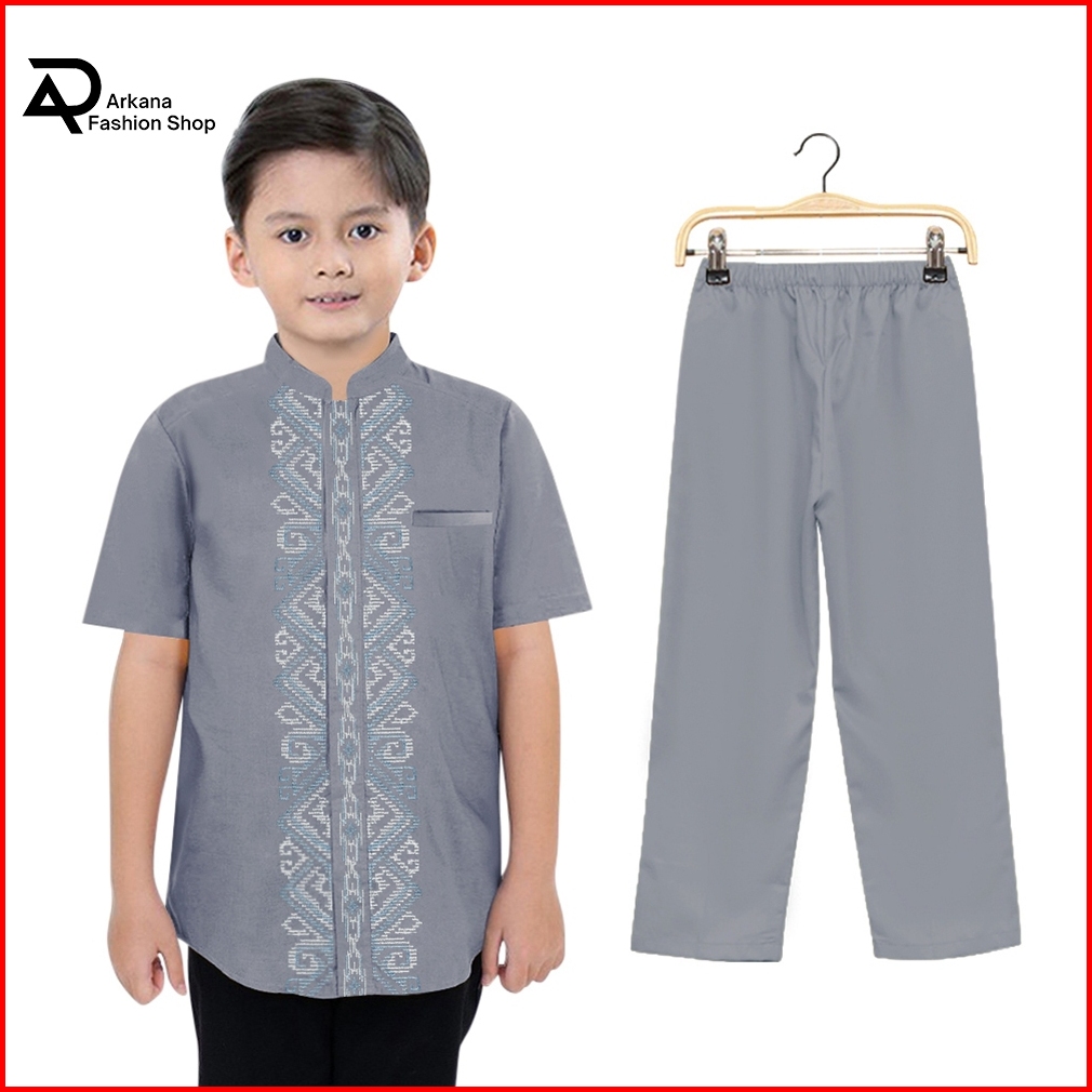Arkana Fashion Baju Muslim Set Setelan Koko Anak Anak Laki-laki Kombinasi Bordir Batik 4-10 Tahun Terlaris Dan Termurah
