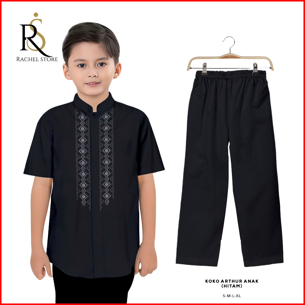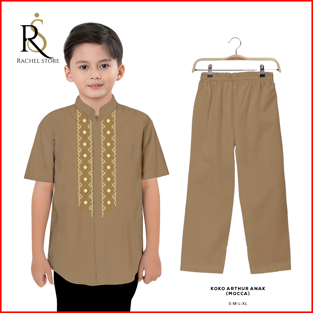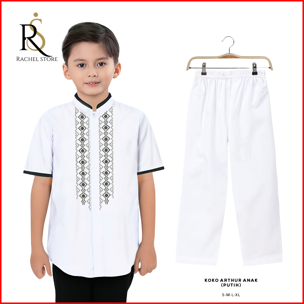 Rachel Fashion Koko Anak Laki-laki One Set Setelan Baju Muslim Lebaran Kombinasi Bordir Premium Lengan Pendek Terbaru Da
