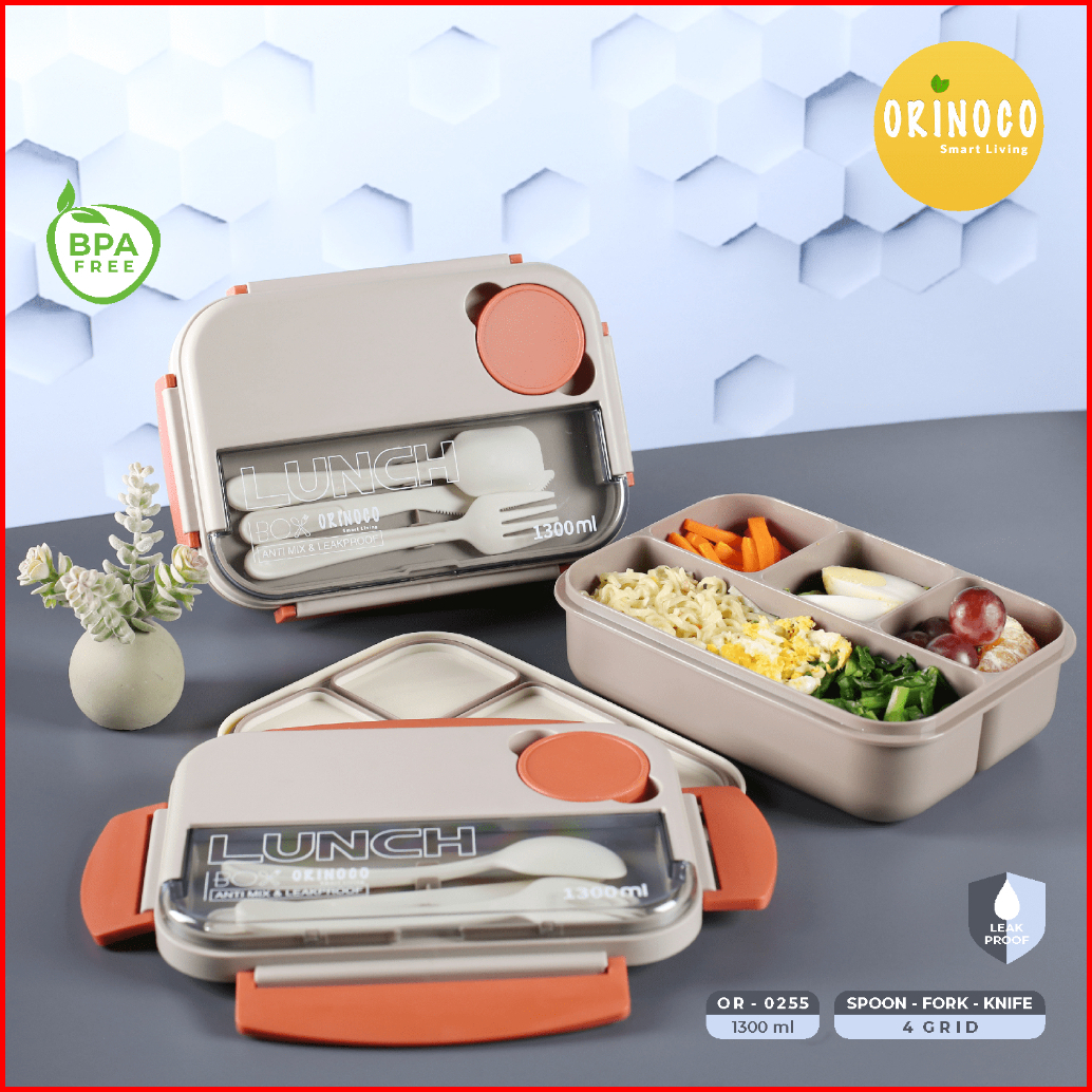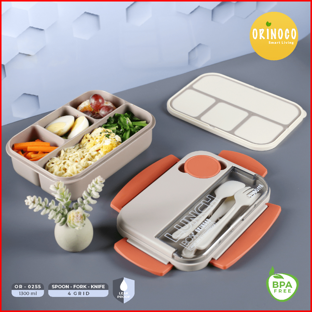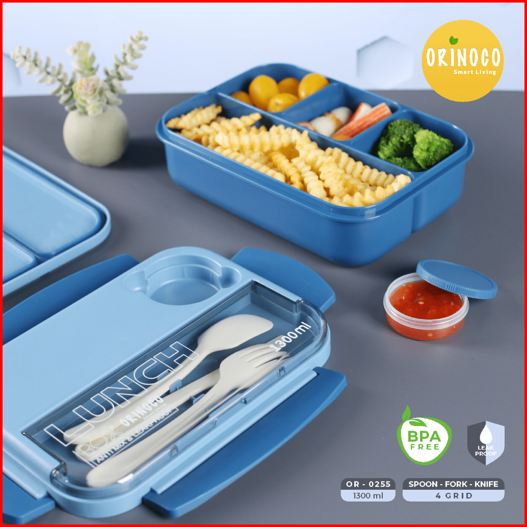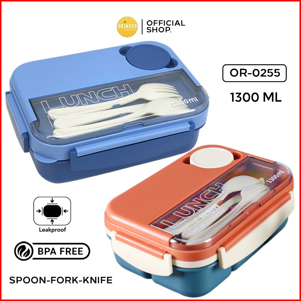 Orinoco Kotak Makan 4 Sekat Anti Tumpah 1300 Ml Include Wadah Sup Free Sendok Garpu Pisau Or-0255