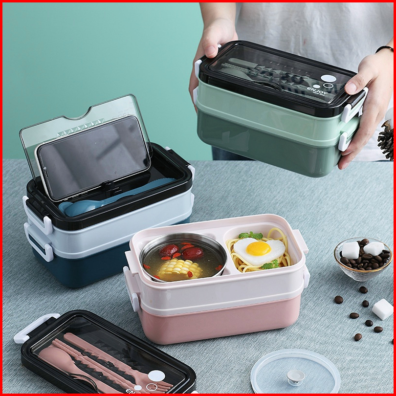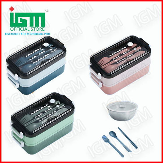 Igm-kapasitas Besar 304 Stainless Steel 2-lapisan Tahan Panas Tinggi Kotak Makan Siang Kantor Kotak Makan Siang Anak Kot