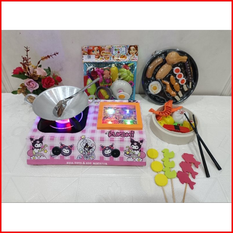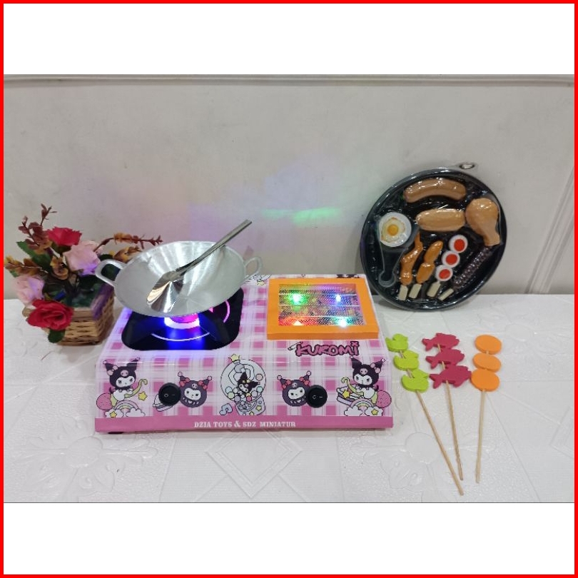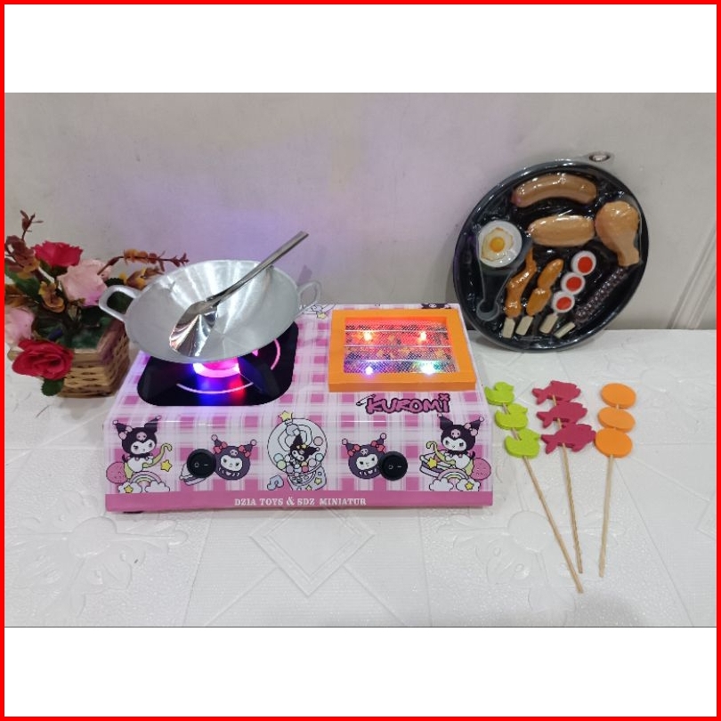 Kompor Mainan Anak Led 2 Tungku Kuromi Mainan Kompor Bakaran Led Bisa Di Cas