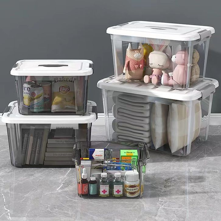 42.2L-65.2L Kotak Penyimpanan Plastik Hitam Keranjang Penyimpanan Transparan Ukuran Besar+Handel+Tutup Box Storage