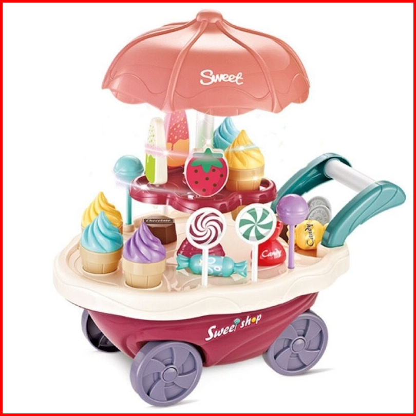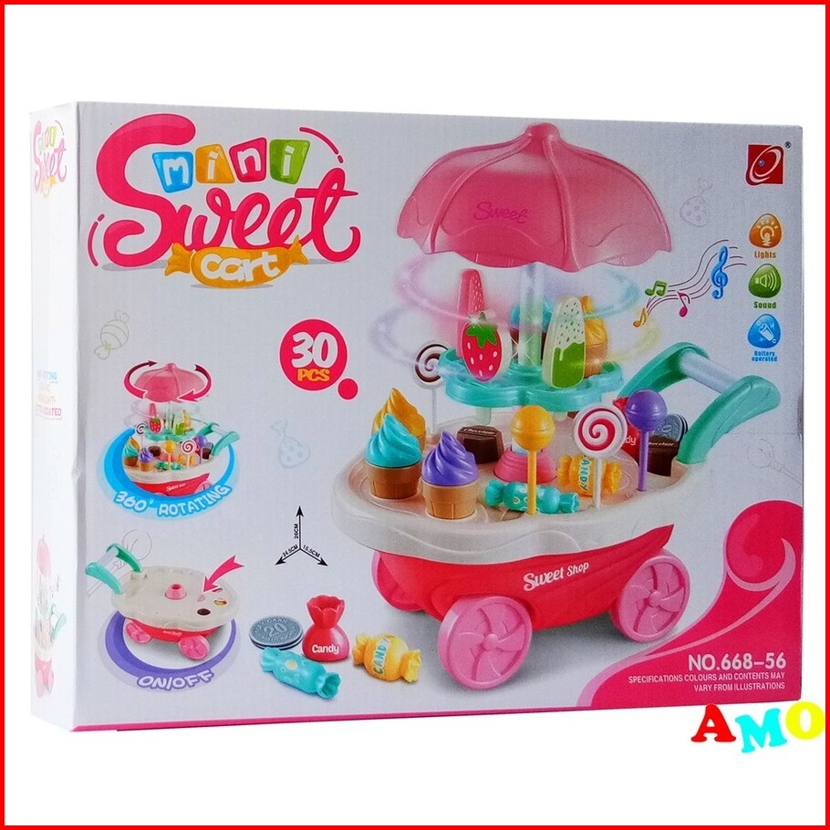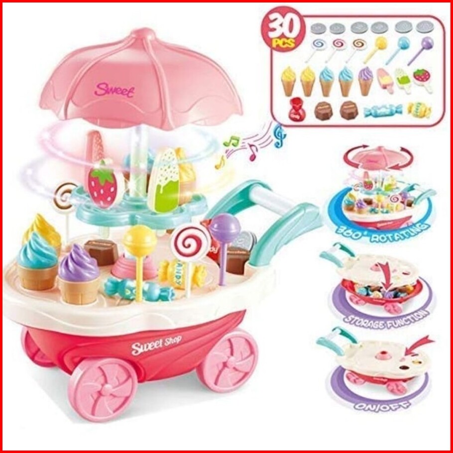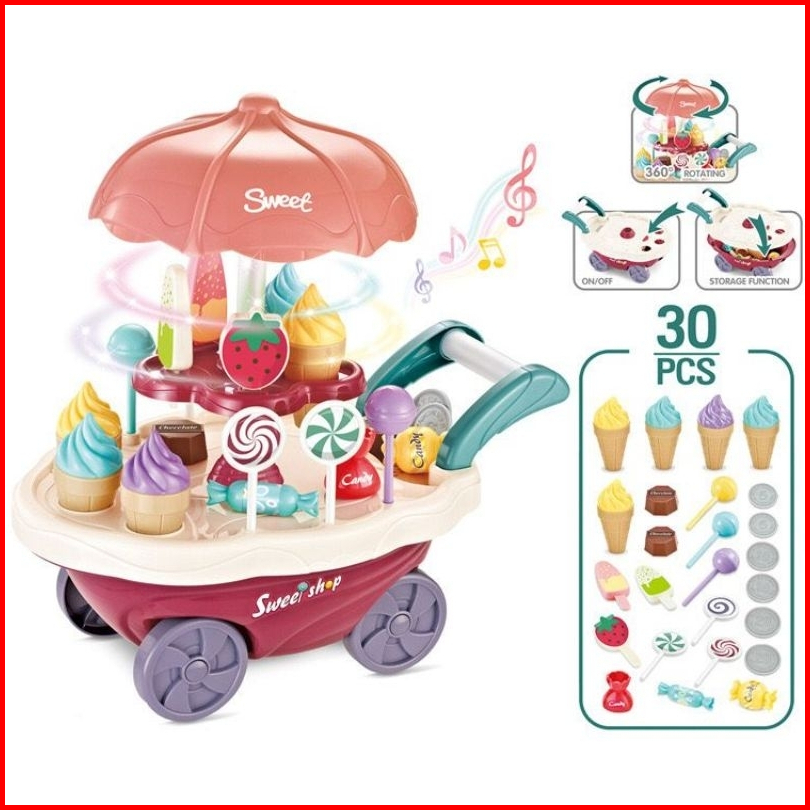 Promo Mainan Edukasi Kereta Dorong Ice Cream Cart Ice Cream Sweet Shop Candy Cart Pink 668-25-kado Mainan Anak Cewek