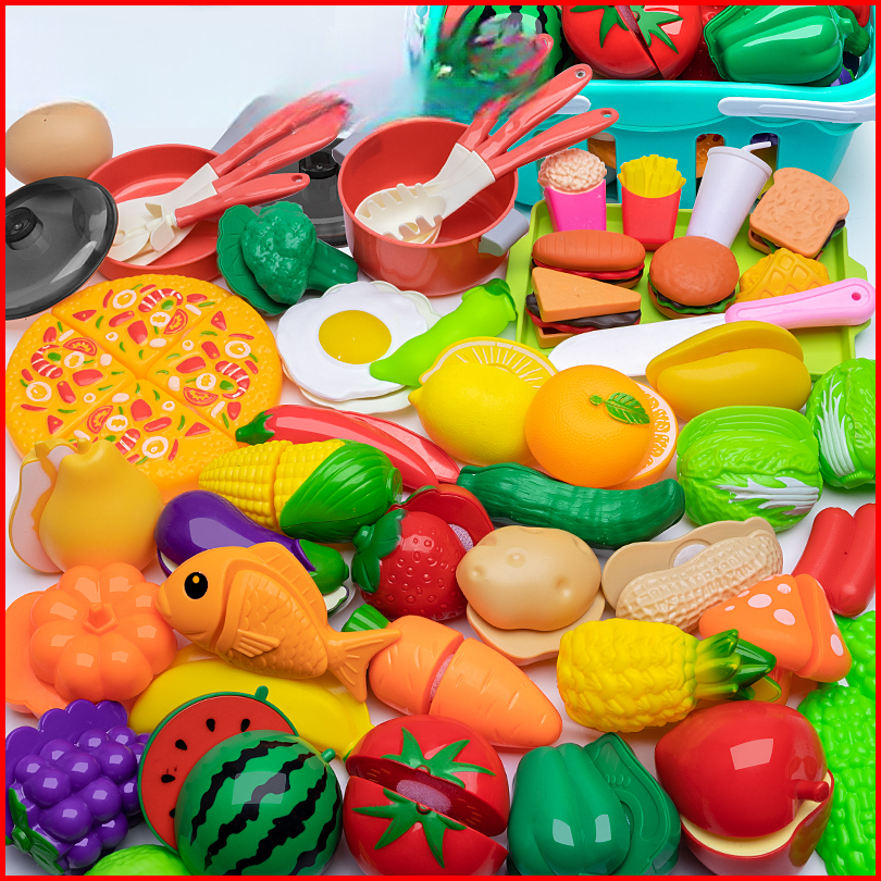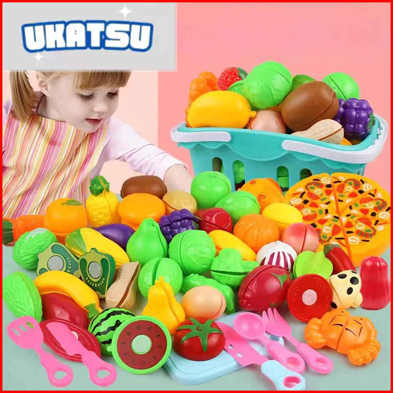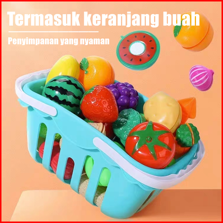 Mainan Set Dapur Potong Buah Dengan Keranjang Mainan Potong Buah 86pcs Dengan Keranjang Manan Anak Perempuan