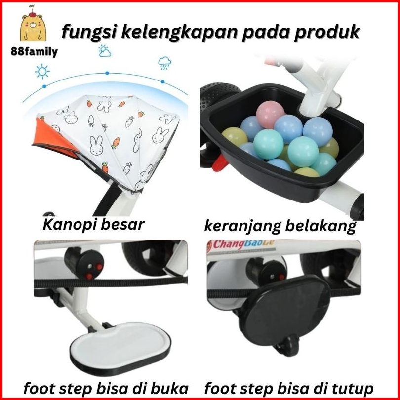 Sepeda 3 In 1 Anak Tricycle Sepeda Roda Tiga Multifungsi Bayi 1 Tahun