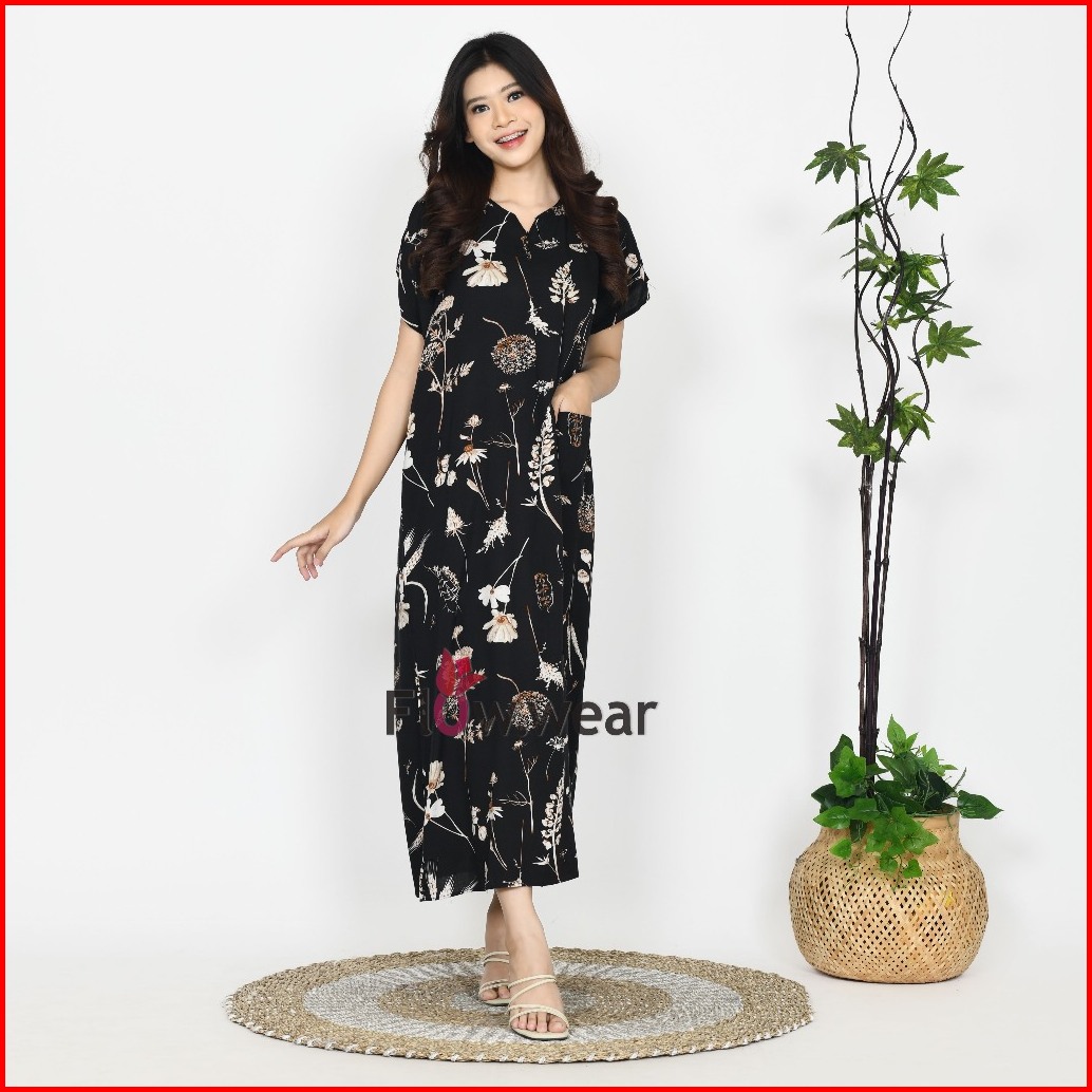 Dress Rayon Premium Daster Bumil Busui Daster Kekinian Daster Panjang Lengan Pendek - Asheey