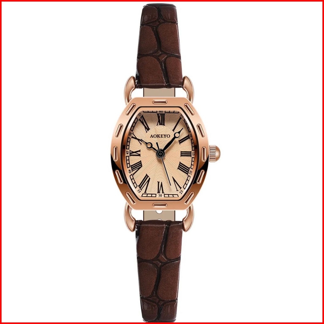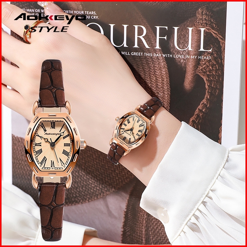 Aokeyo Jam Tangan Wanita S053 Klasik Mode Display Kuarsa Santai Jam Tali Kulit Tahan Air Jam Tangan Cewek Free Box Kartu