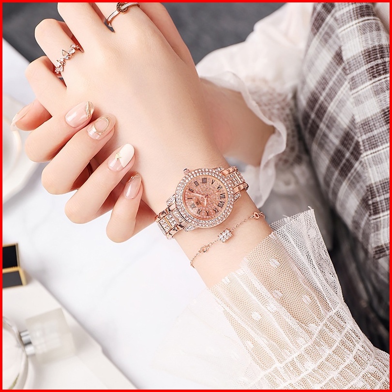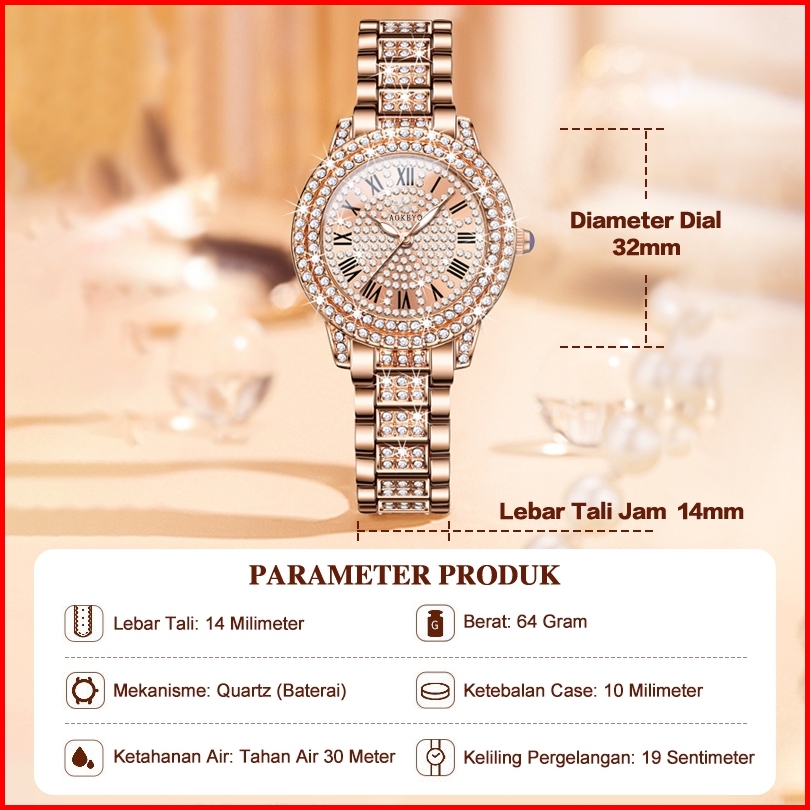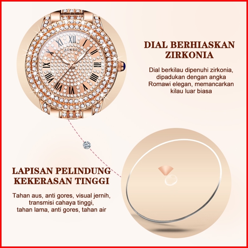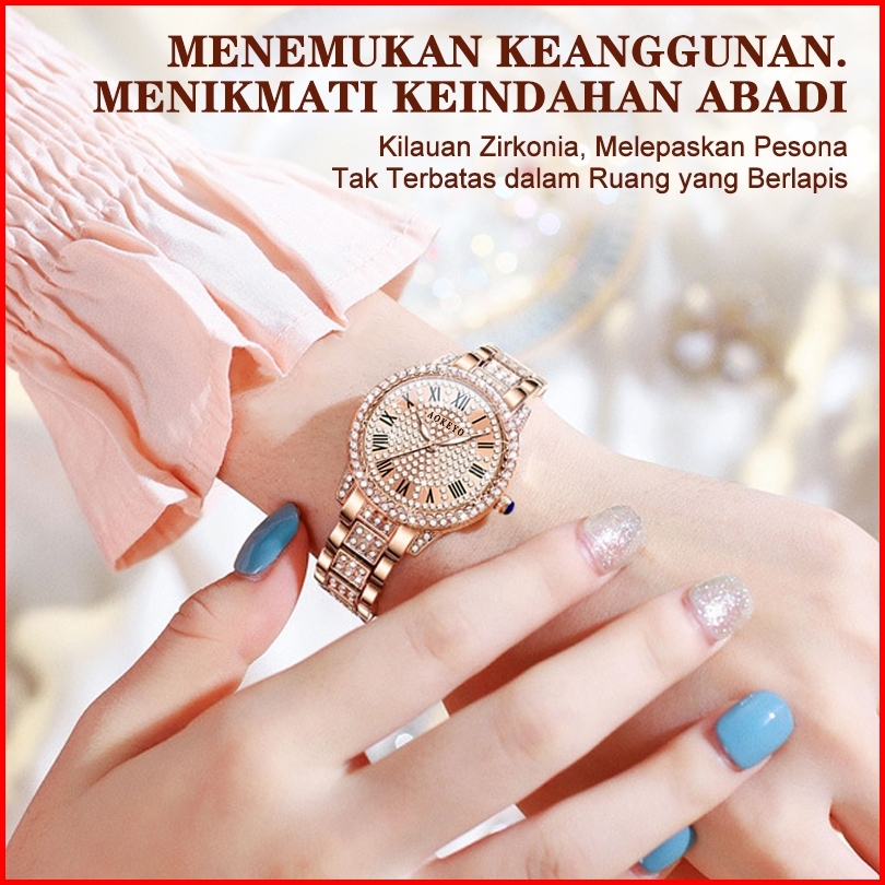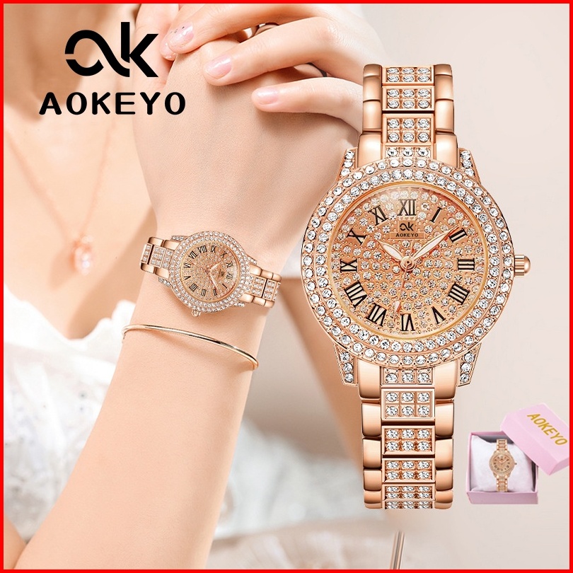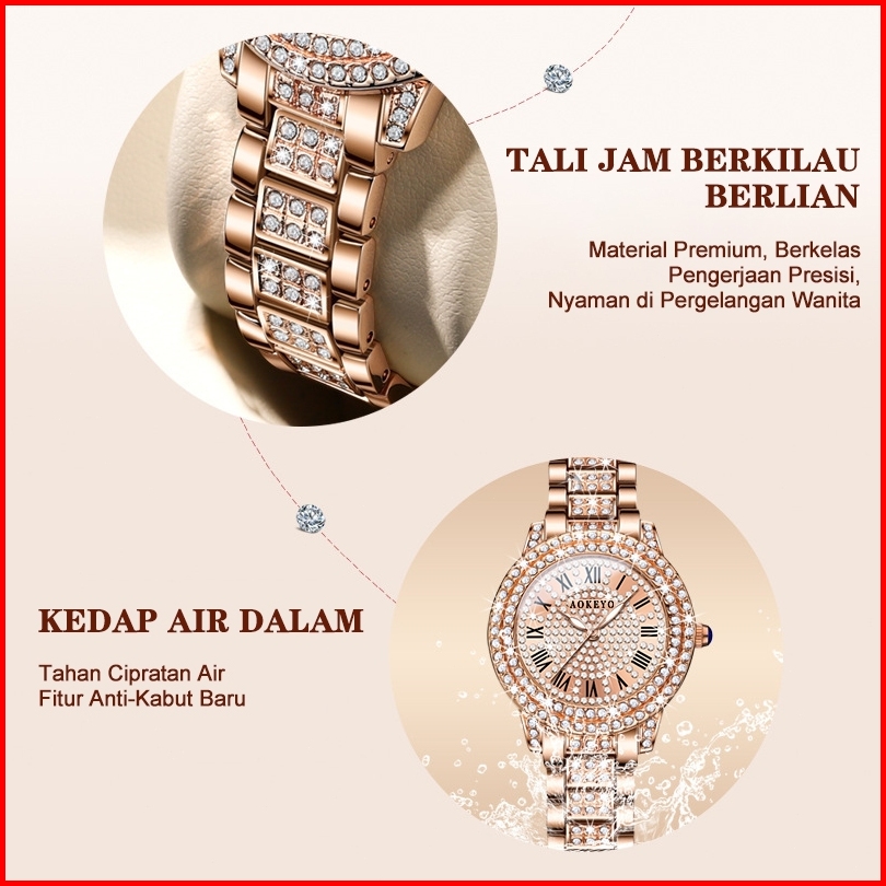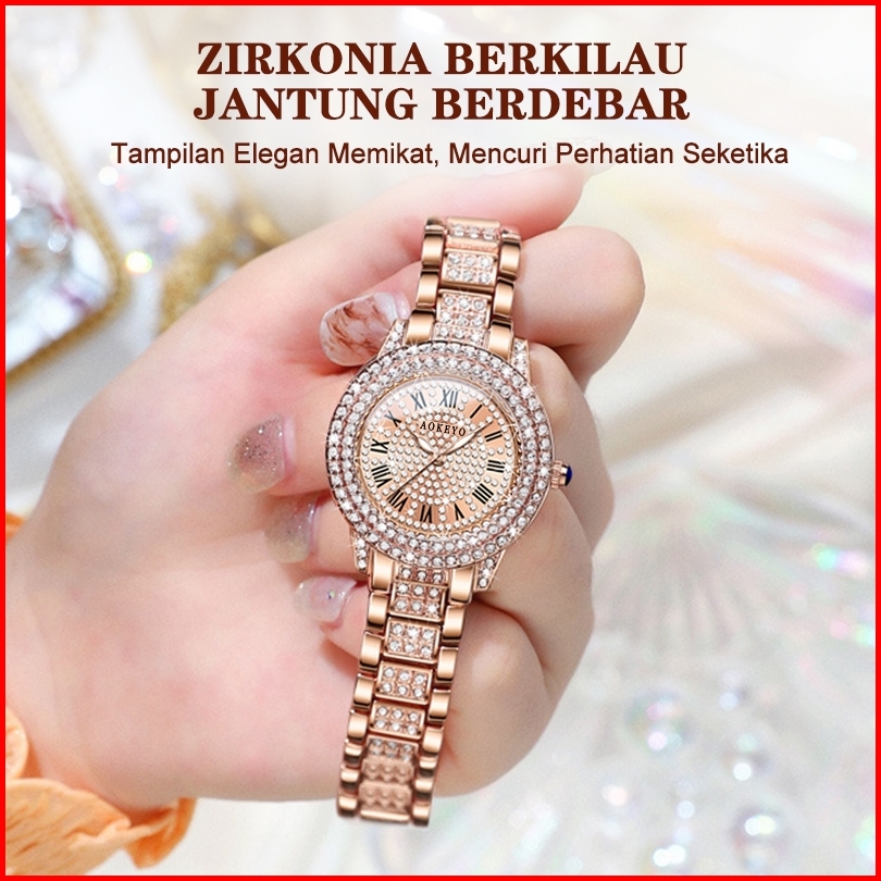 Aokeyo Jam Tangan Wanita Diamond Rose Analog Fashion Casual Women Strap Steel Quartz Watch Tahan Air Jam Tangan Cewek Fr