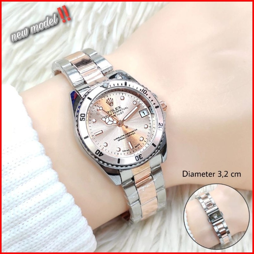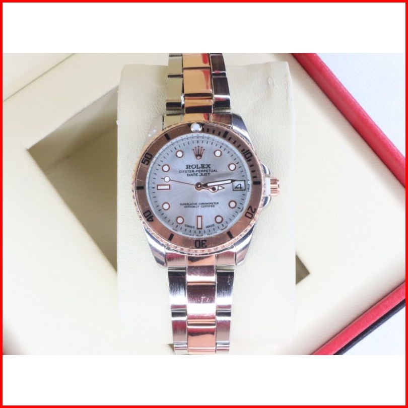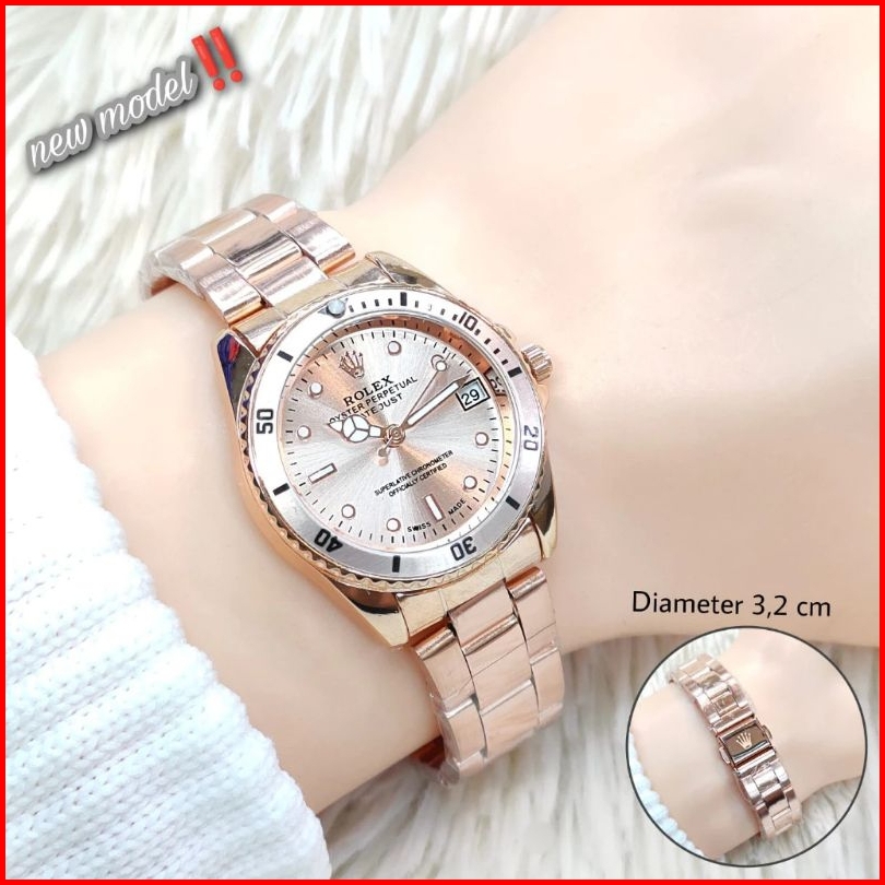 Jam Tangan Wanita Rolex Kekinian Elegan Tanggal Aktif K7181 Free Box Ori Dan Baterai