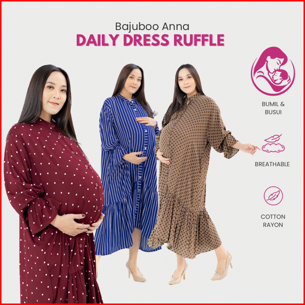 Bajuboo Anna - Daster Busui Bumil Friendly Rayon Lengan Ruffle