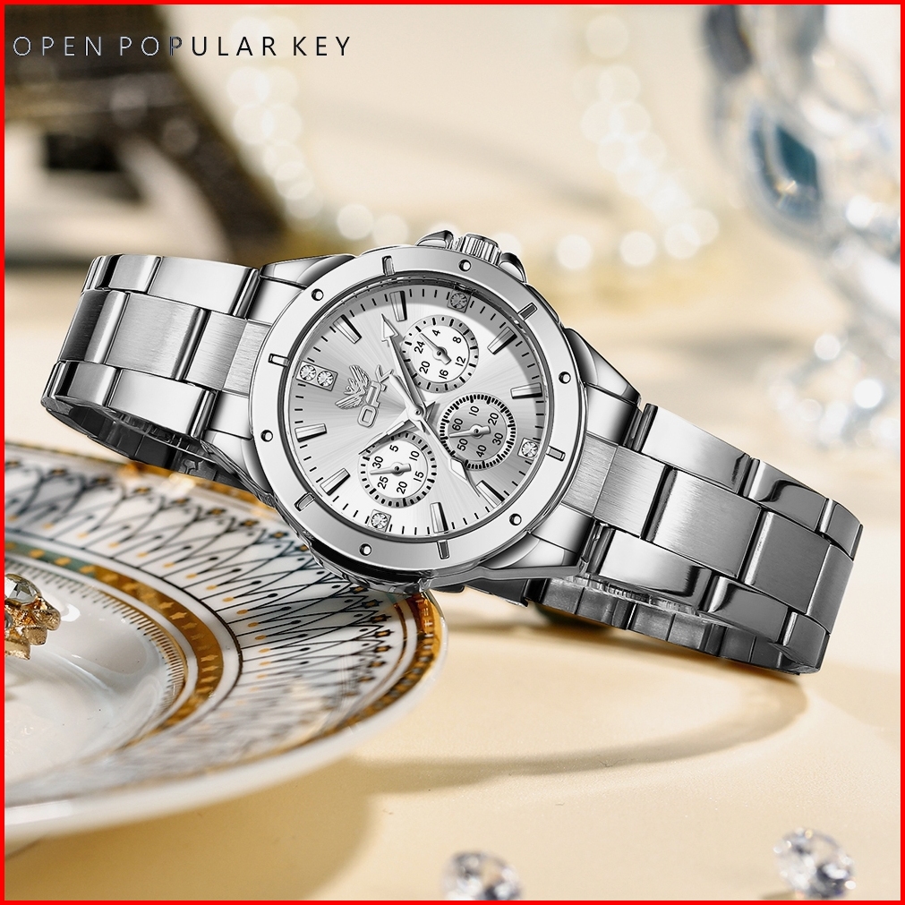 Opk Jam Tangan Wanita Anti Air Original Kecil Korea Analog Tahan Air Putih Stainless Steel Women Watch Hadiah Mewah Set