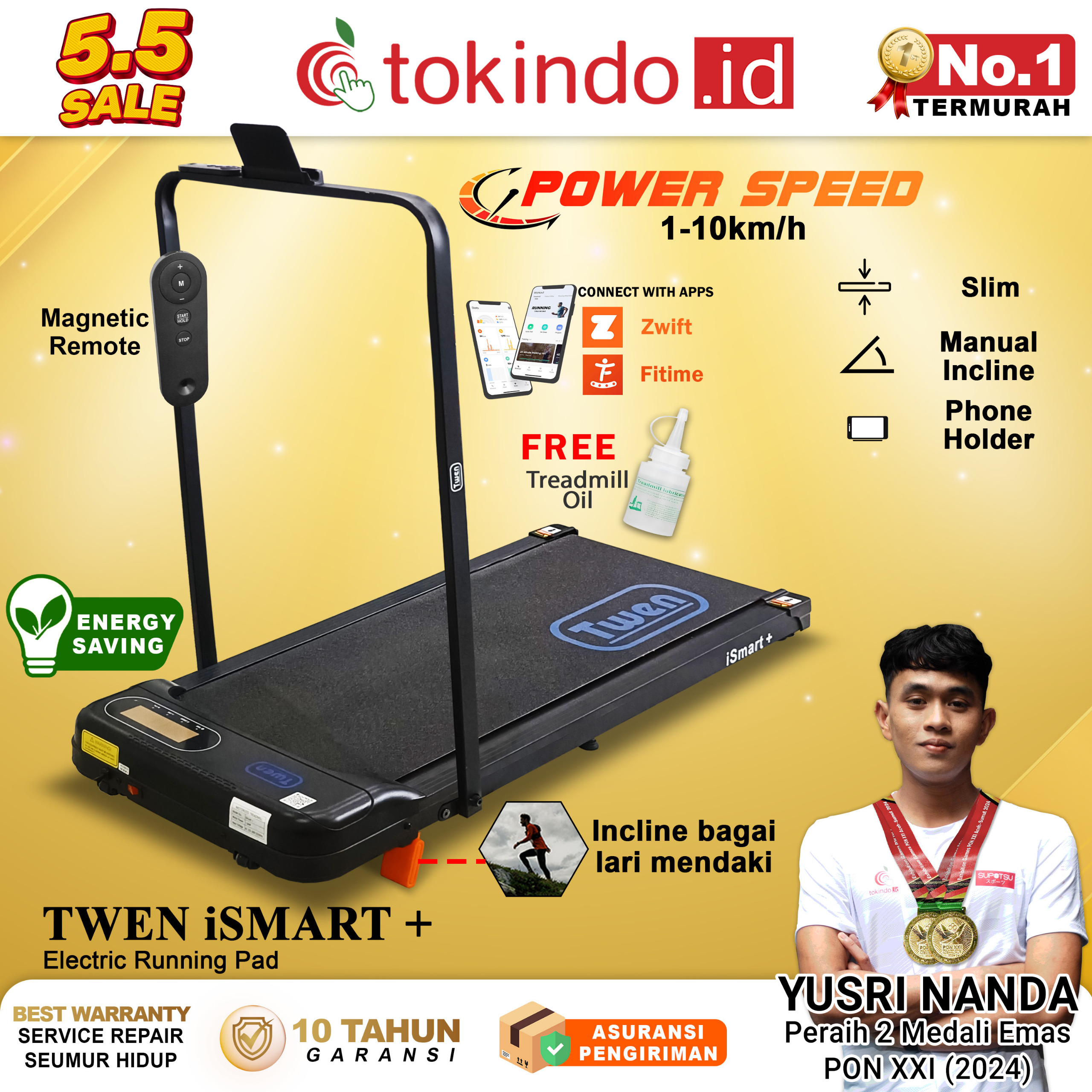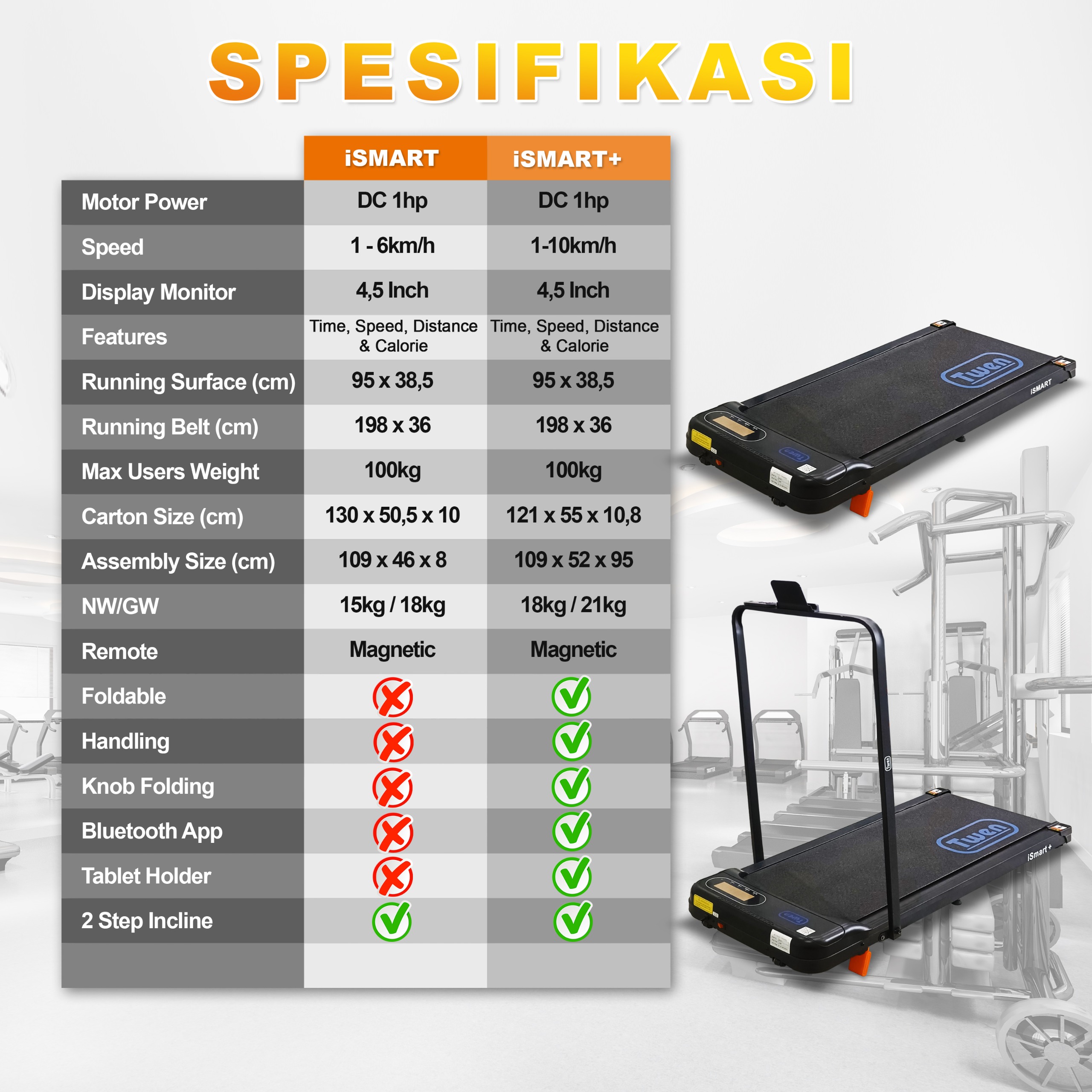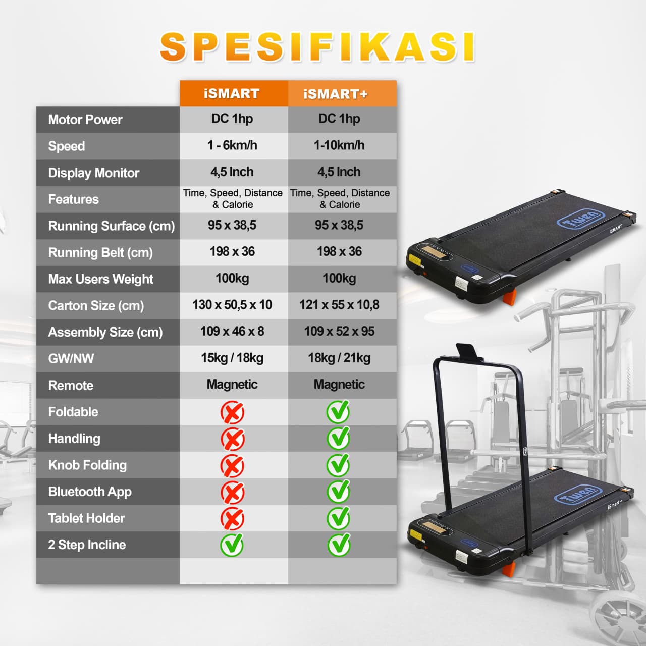 TWEN ISmart Plus ISmart+ Treadmill Listrik Treadmill Portable Treadmill Walking Pad Treadmill Running Pad Treadmil
