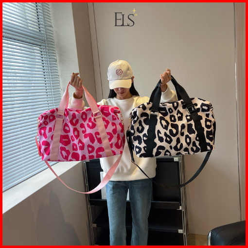 Elsa Tas Olahraga Wanita Tas Perjalanan Mudik Motif Macan Tutul Tas Penyimpanan 881