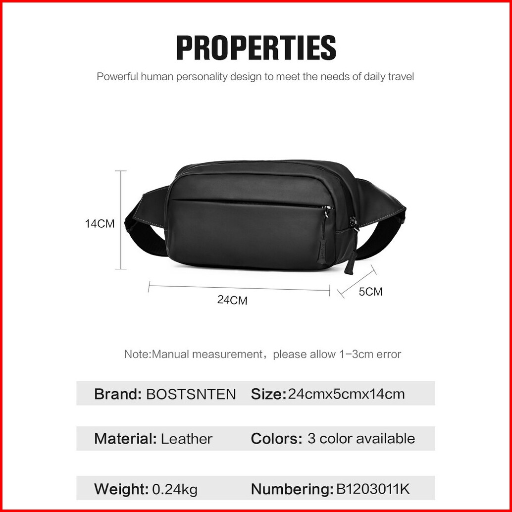 Bostanten Tas Pinggang Pria Tahan Air Tersedia Hitam Abu-abu