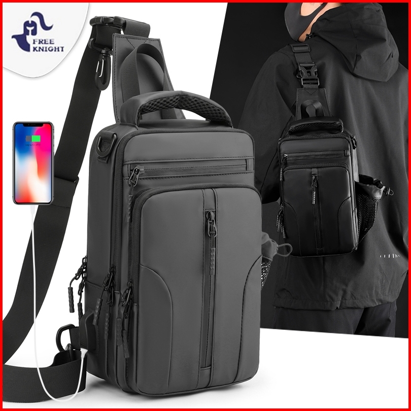 Freeknight Tas Selempang Travel Usb Port Sling Bag Tas Slempang Pria Keren Multifungsi Cross Body Bag Ts718