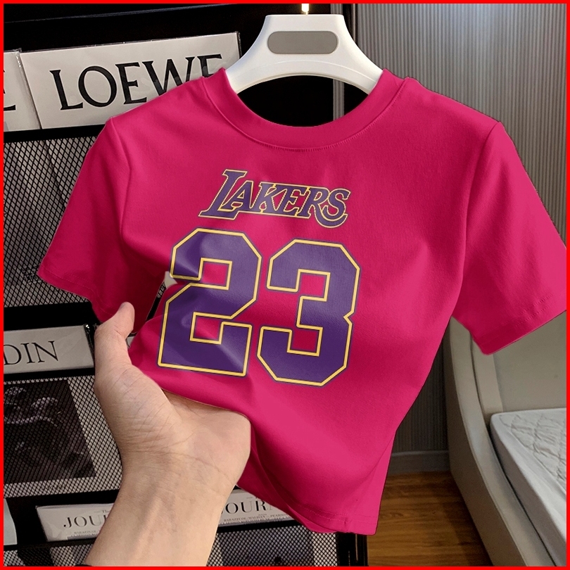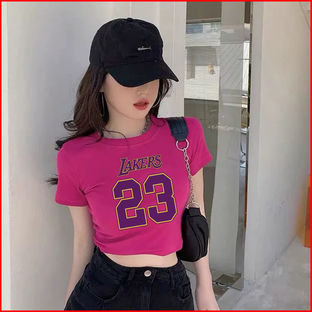 Seoul Print 006-127 Crop Top Wanita Slimfit Baju Croptee Kaos Letter Motif Hitam Putih Cream Fuschia Korean Style