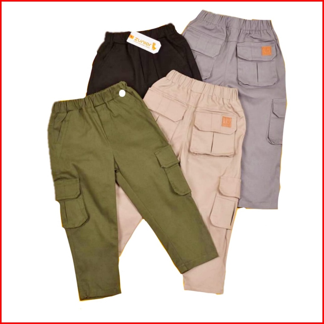 Celana Cargo Anak Laki-laki Bahan Katun 0-15 Tahun Pocket Samping Kiri Kanan Nyaman Tahan Lama