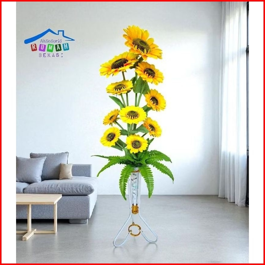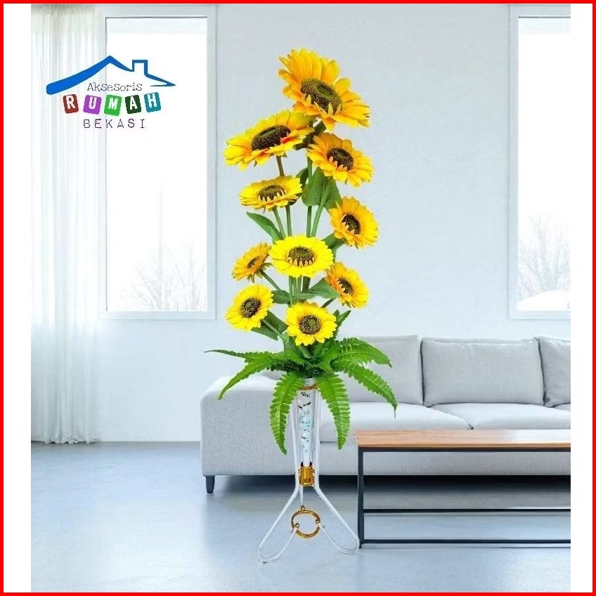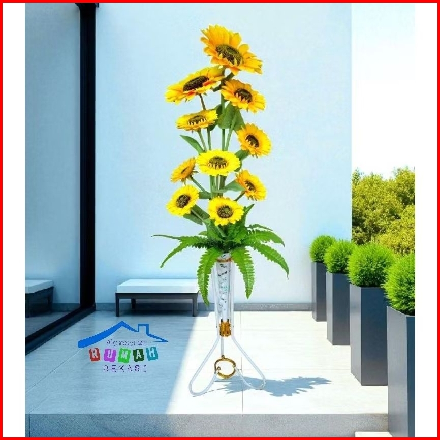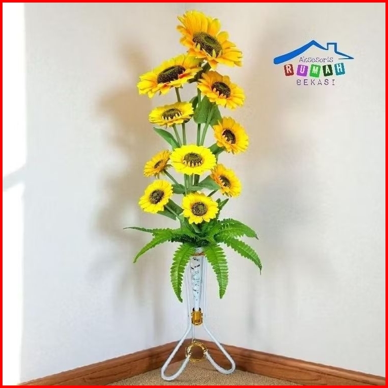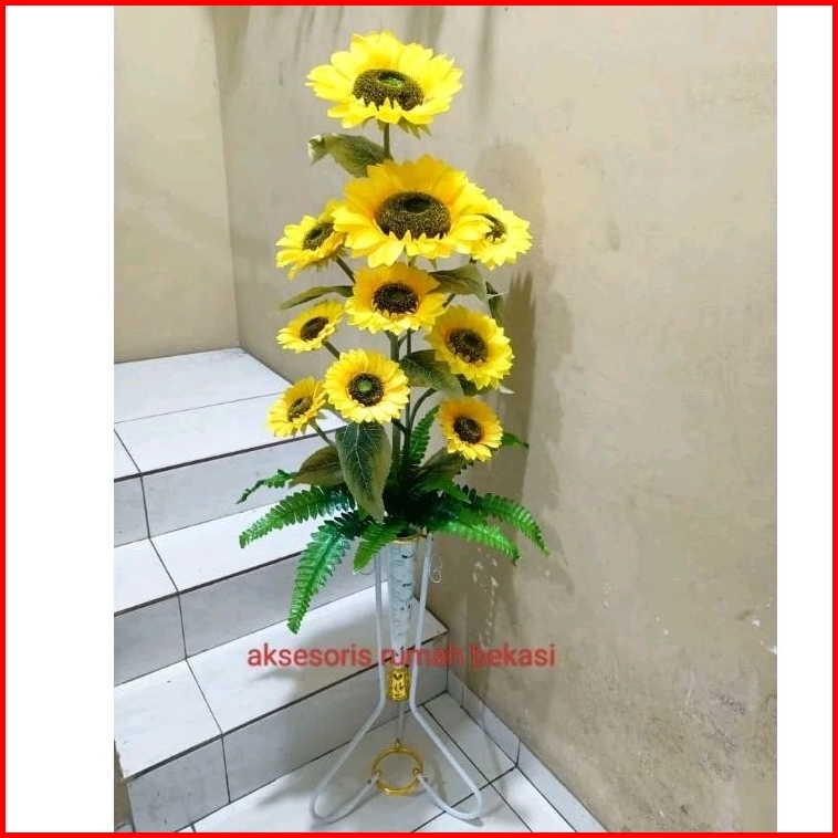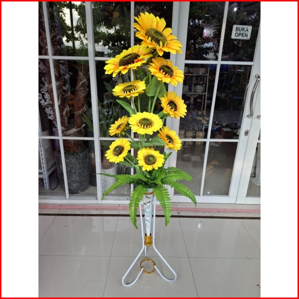 Bunga Matahari Premium Jumbo Dengan Pot Standing Besi