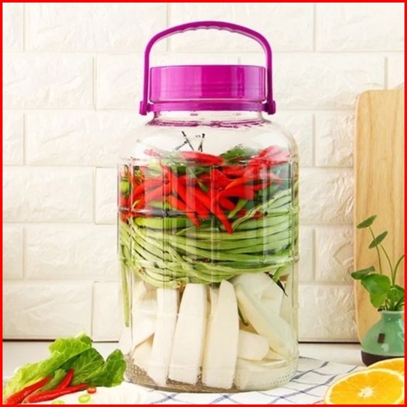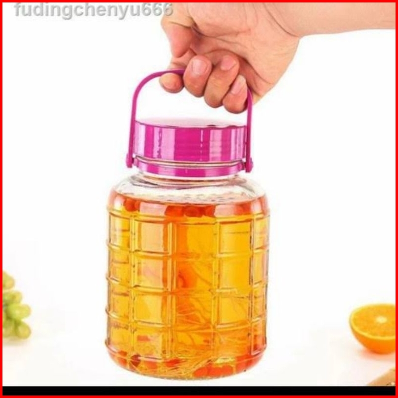 Toples Kaca Beling Tutup Ungu Karet Kedap Gagang Kapasitas 4 Liter 4l Canister Jar Asinan Manisan Kombucha Pengawetan Ma