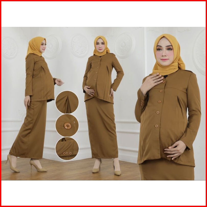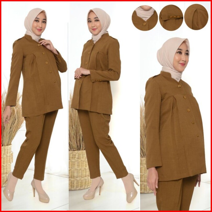 Stelan Pemda Wanita Hamil Seragam Hamil Pemda Hamil Pns Coklat Tua Kerah Sanghai Hamil