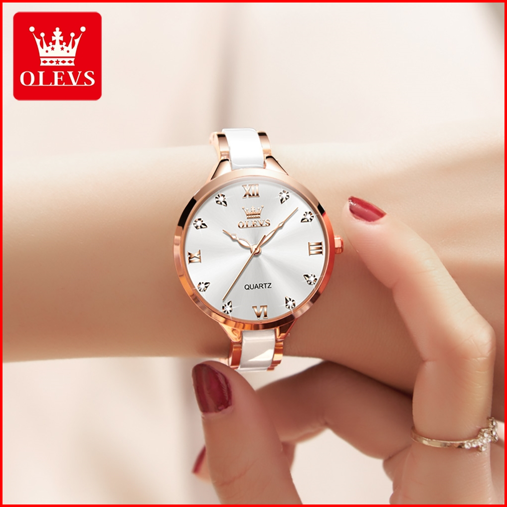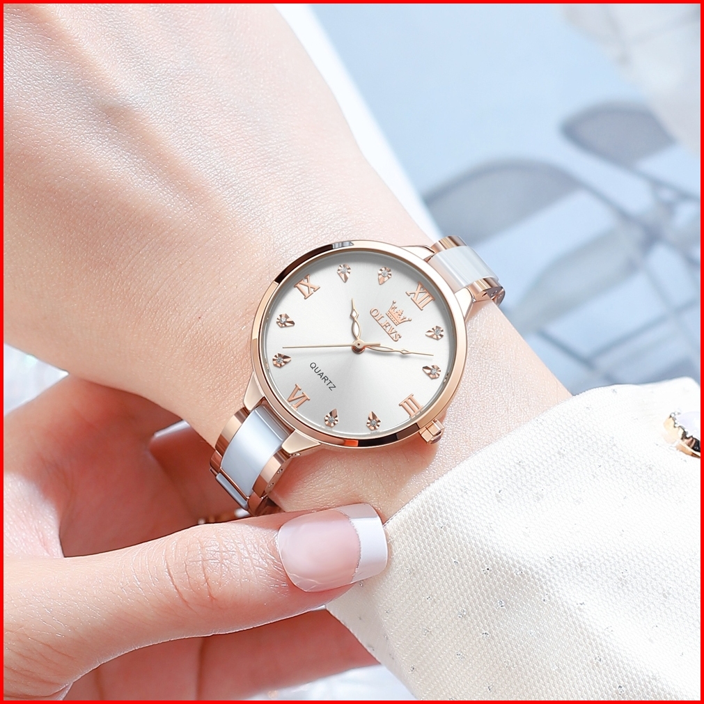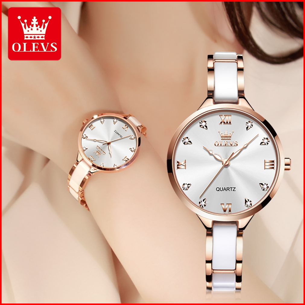 Olevs Jam Tangan Wanita Anti Air Original Unik Cantik Compact Porselen Tali Jam Putih Fashion Women Watch Model 5872