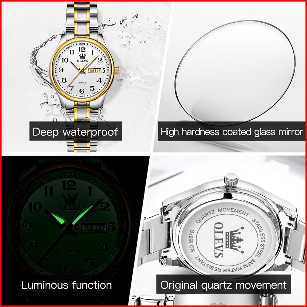 Olevs Jam Tangan Wanita Original Anti Air Tahan Cewek Elegan Luminous Stainless Steel Women Watch Luxury Fashion Model 5