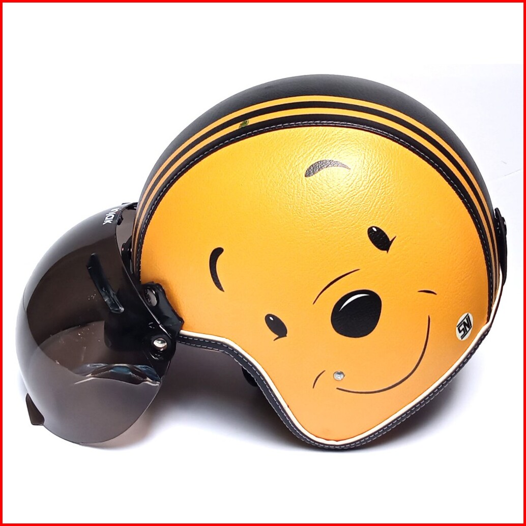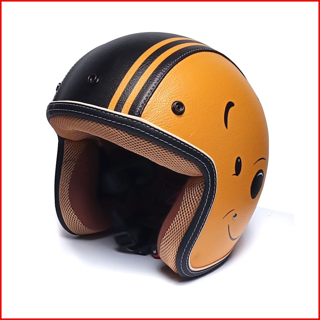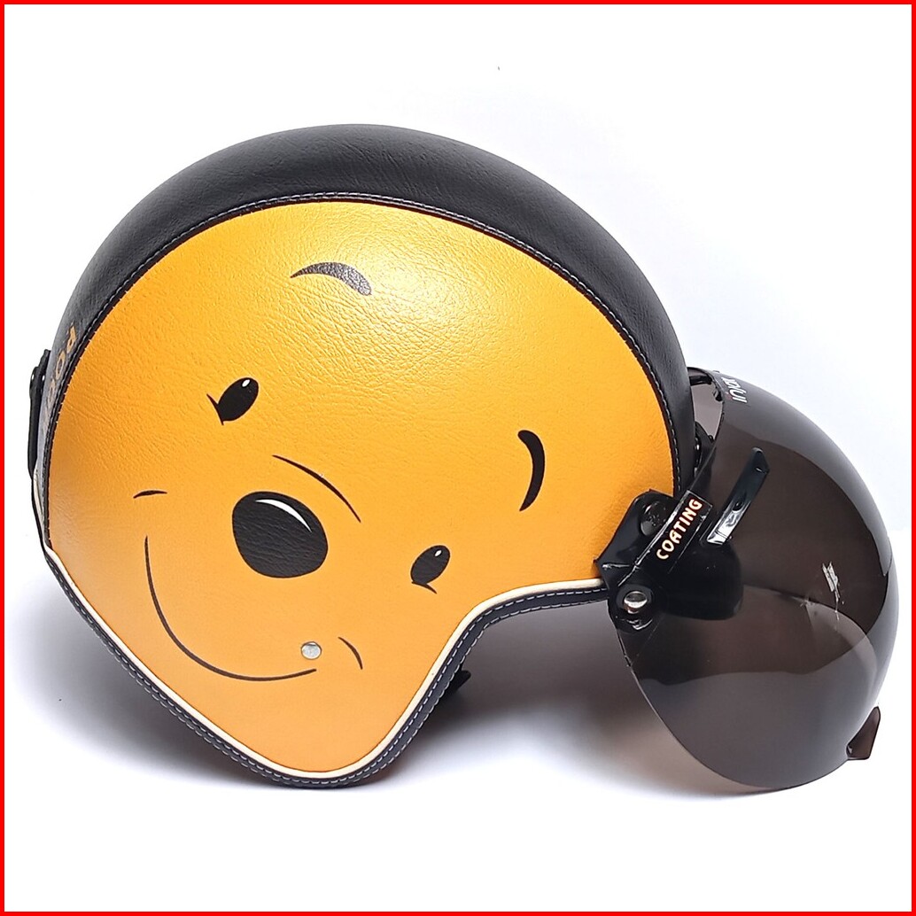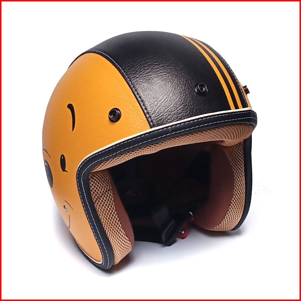 Helm Bogo Retro Kulit Dewasa Full Leher Dewasa Pria Wanita Murah Helm Motif Pooh Allsize Lingkar Kepala 58-61cm