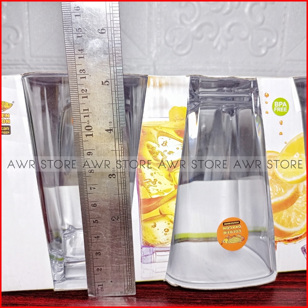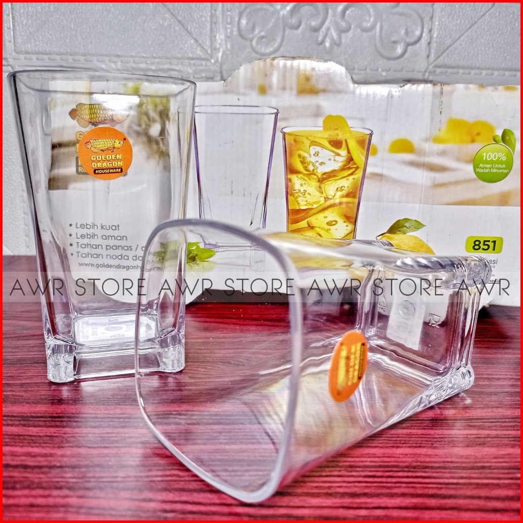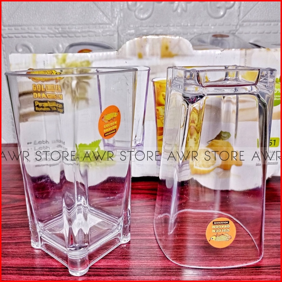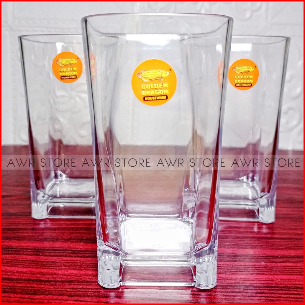 Termurah 6 Pcs Gelas Persegi Golden Dragon 400ml T13cm Foodgrade Dan Sni