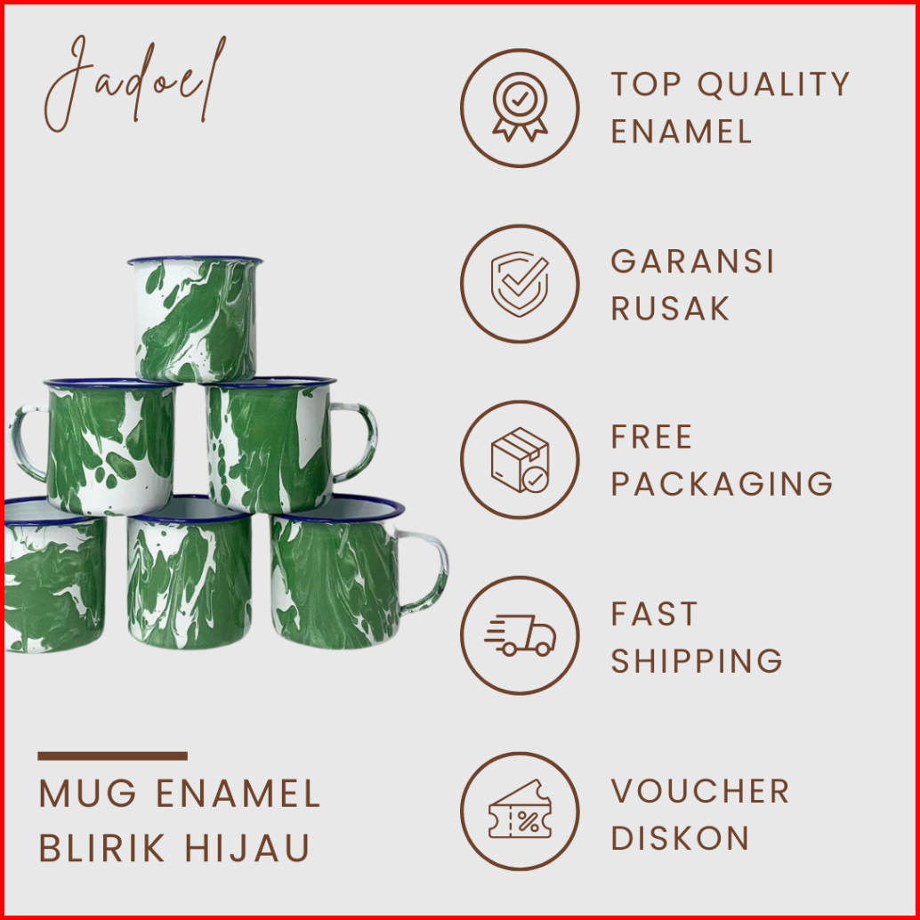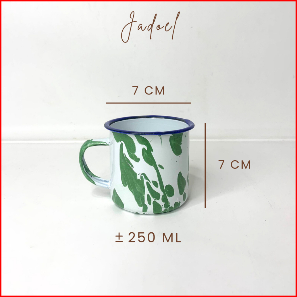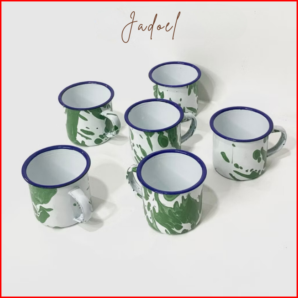 Jadoel Mug 7 Enamel Blirik Hijau Set 6 Pcs Cangkir Gelas Kopi Jadul Cangkir Restoran