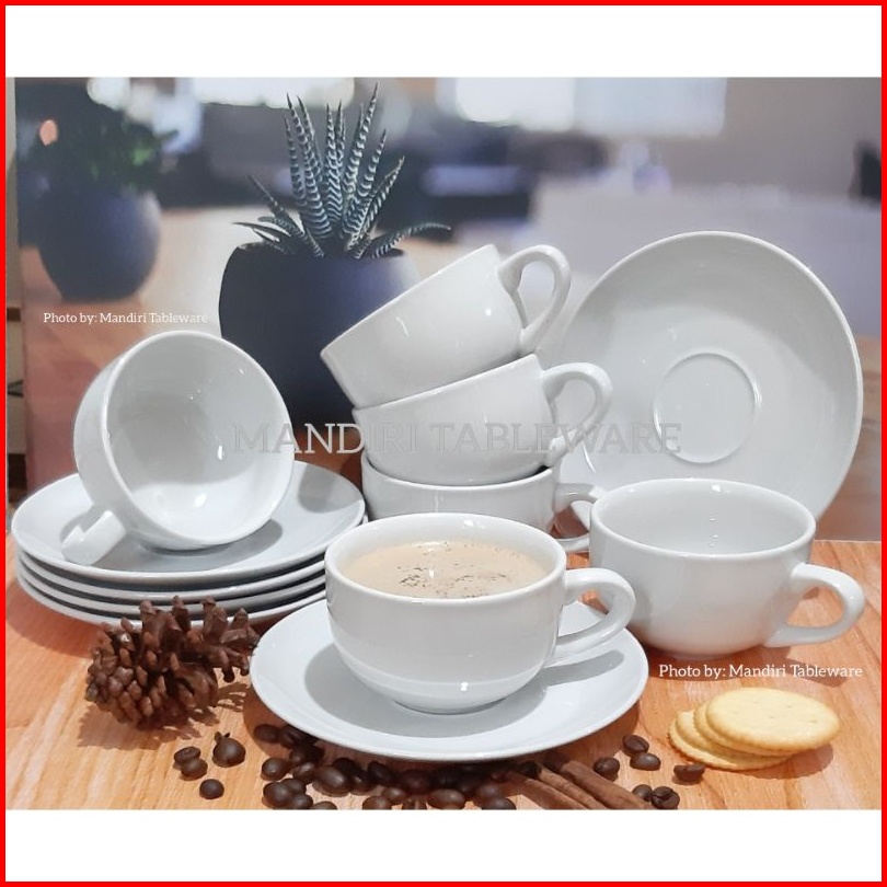 6 Psg Cangkir Cappuccino Keramik 250 Ml Cangkir Latte Best Quality - White