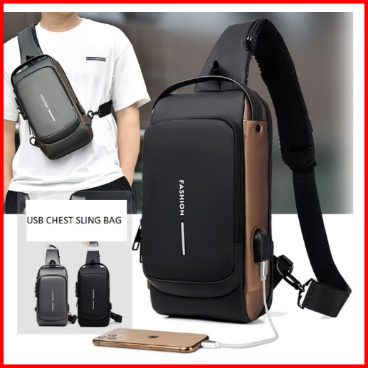 Vivania - Tas Selempang Pria Usb Fashion Waterproof Men Chest Sling Bag