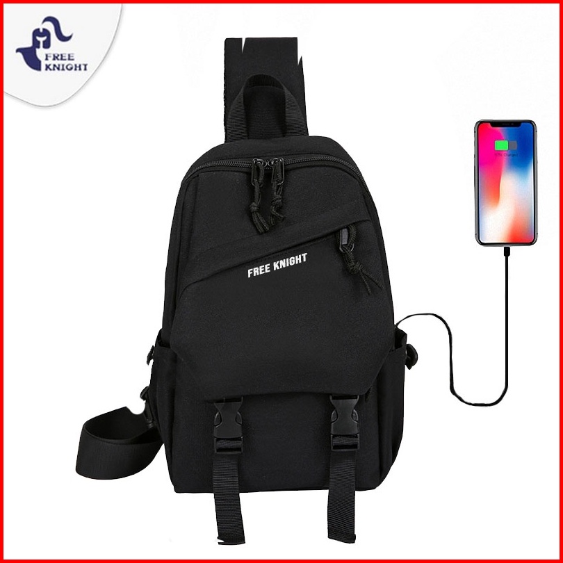Freeknight Tas Selempang Pria Bahan Nilon Usb Charge Tas Dada Sling Bag Waterproof Ts708