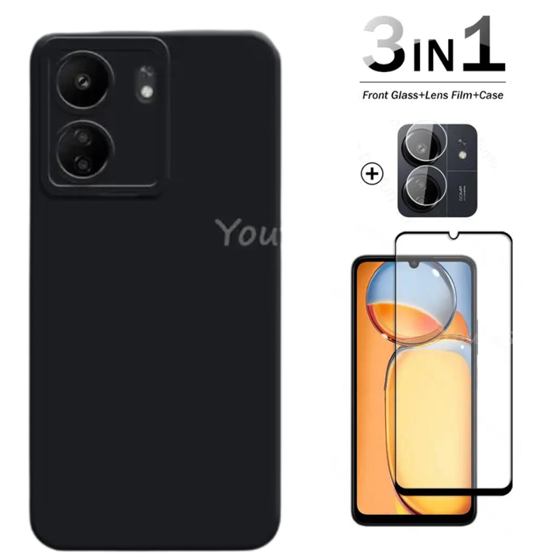 (FLASH SALE)Xiaomi Redmi 13C Poco C65 PAKET 3IN1 Case Softcase BLACK MATTE TEMPERED GLASS CAMERA LENS Case Casing