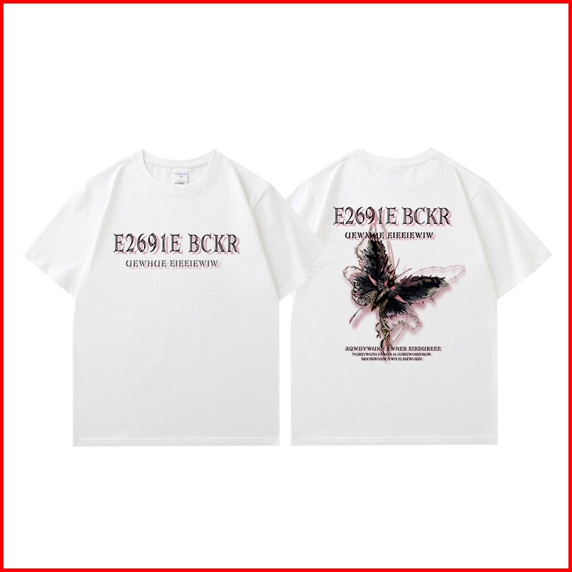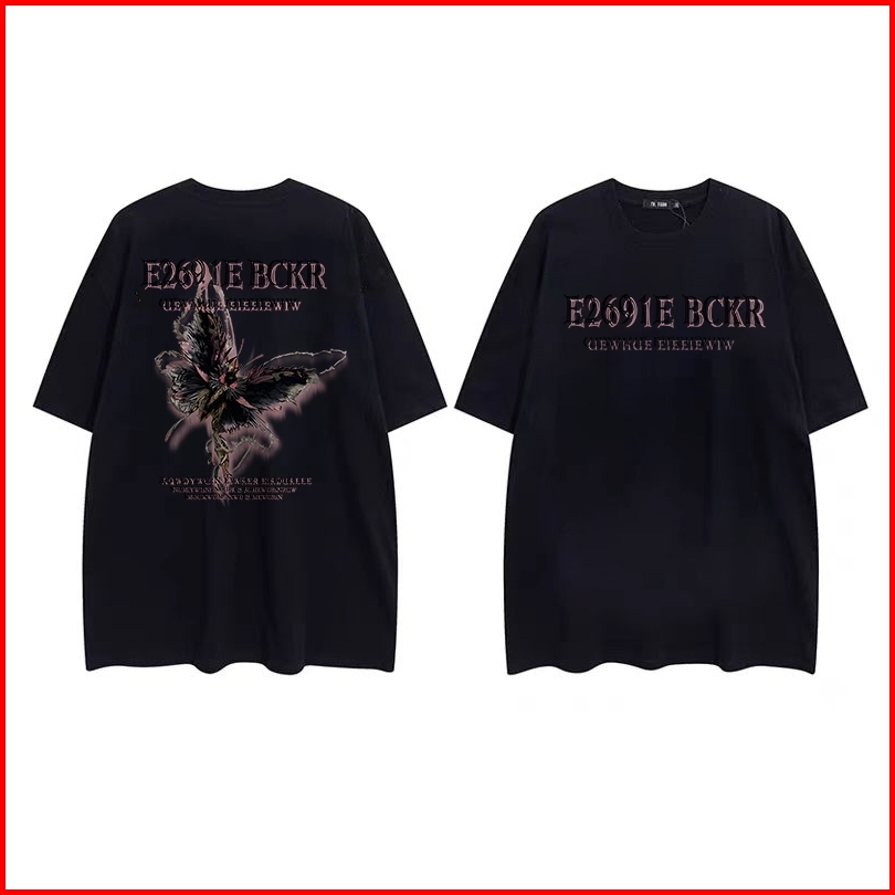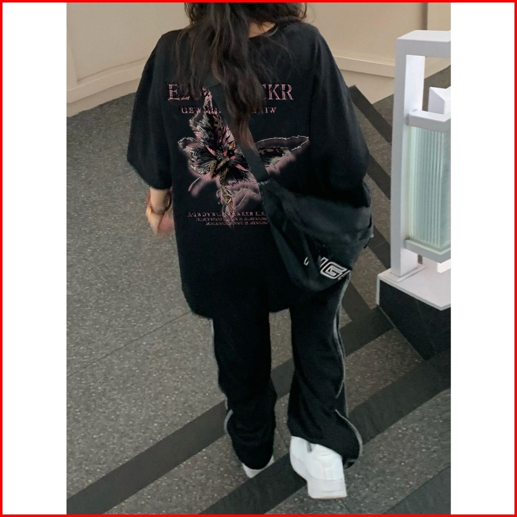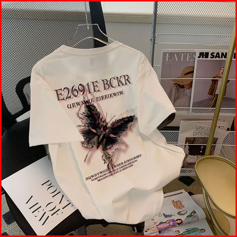 Koikoo Baju Oversize Wanita Atasan Kaos Wanita Kekinian Butterfly Fashion Letter Printed T-shirt Kaos Oversize Wanita Ko