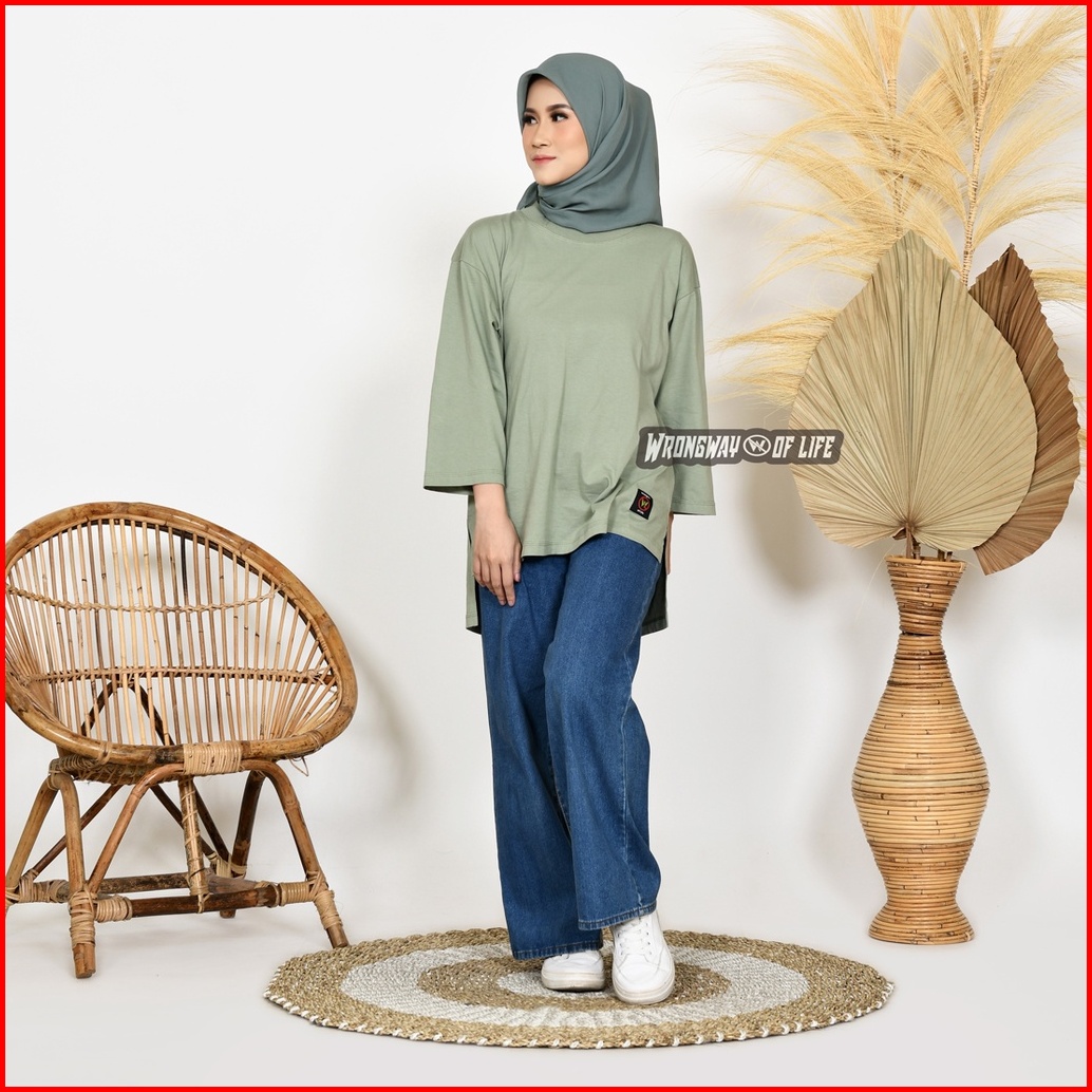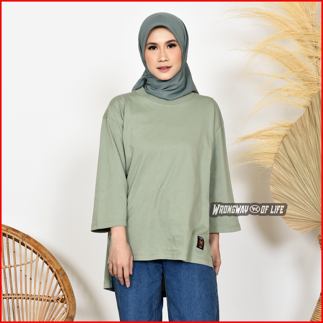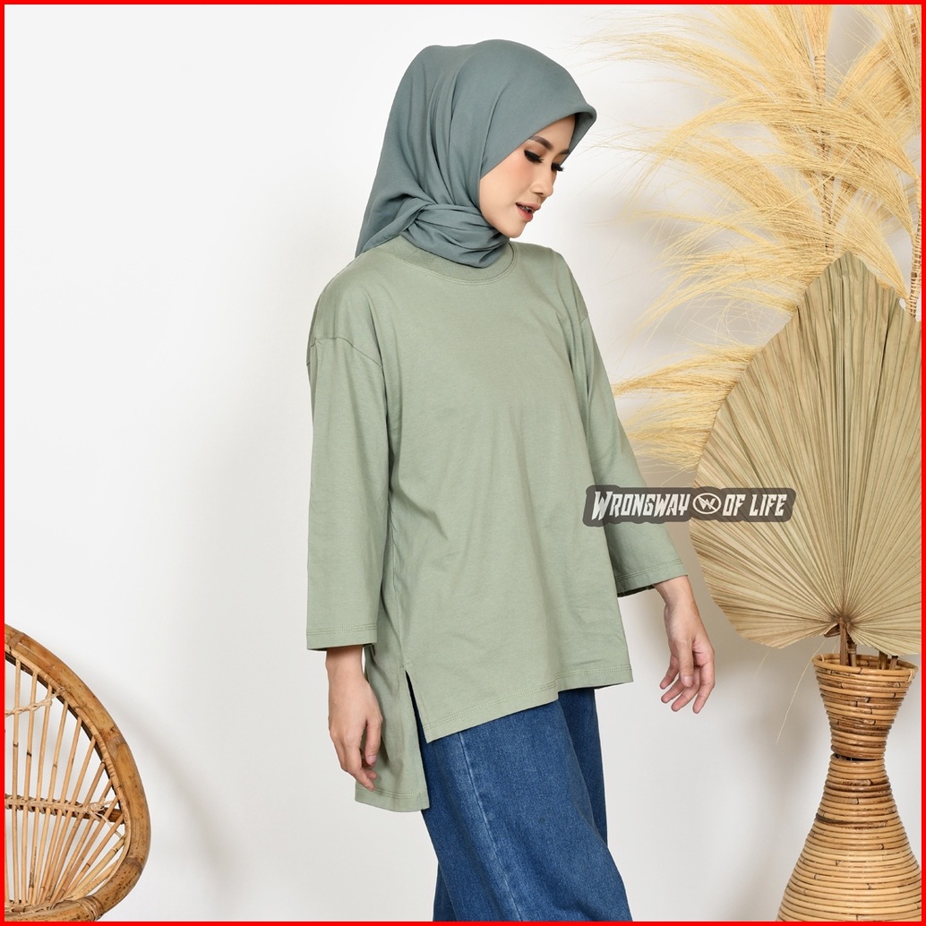 Promo 90 K 2 Pcs Kaos Oversize Hijab Wanita Tangan 7 8 Baju Oversized Cotton Combed 24s Big Size Premium Belah Pinggir -