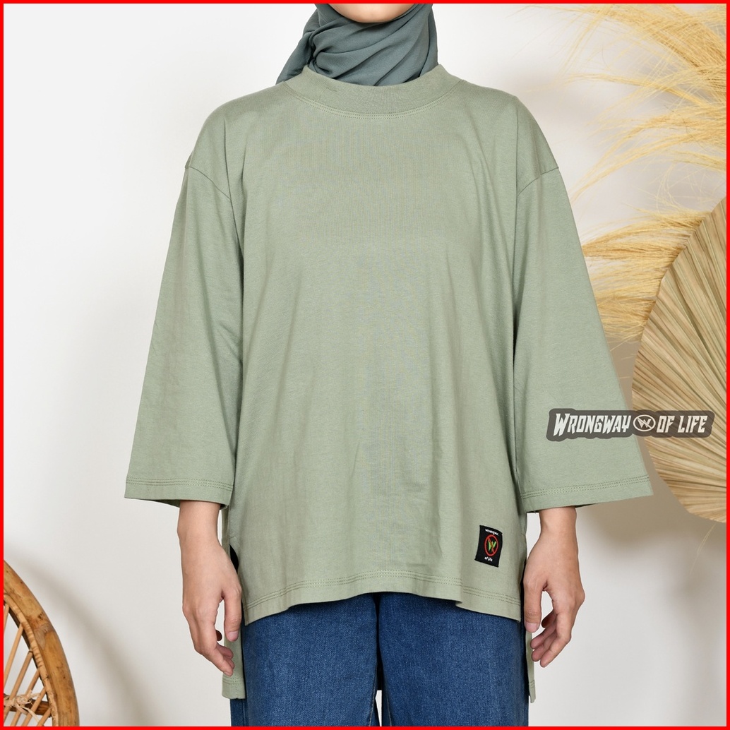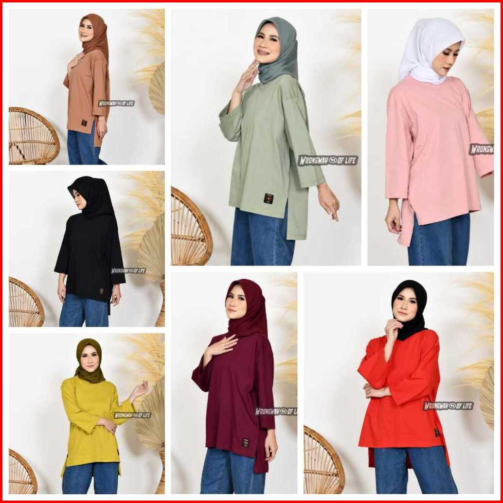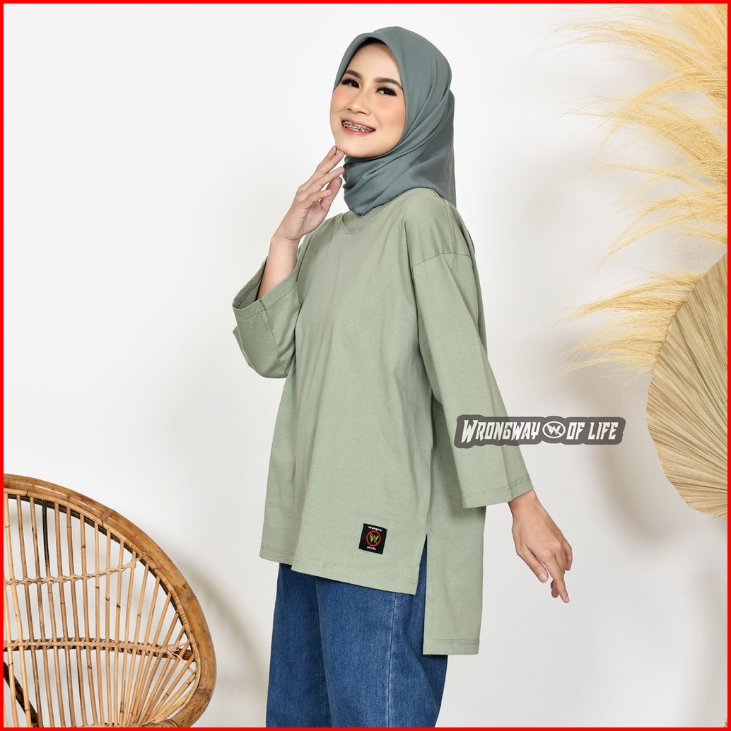 Promo 90 K 2 Pcs Kaos Oversize Hijab Wanita Tangan 7 8 Baju Oversized Cotton Combed 24s Big Size Premium Belah Pinggir -