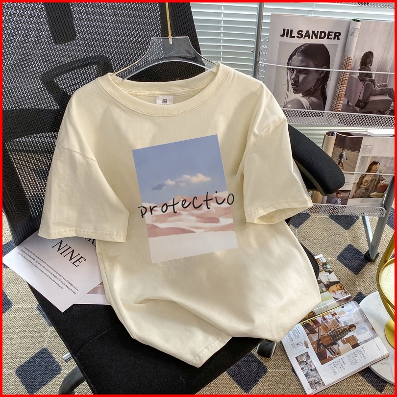 Sezo. T Shirt Blue Scenery Kaos Oversize Baju Korean Style Ootd