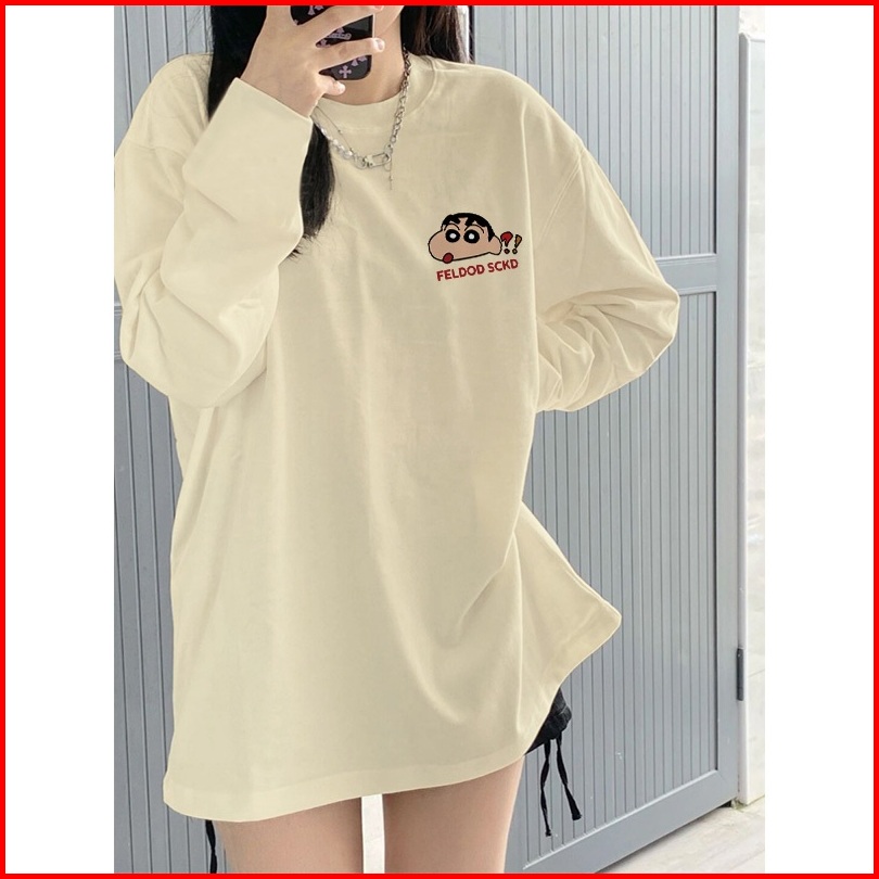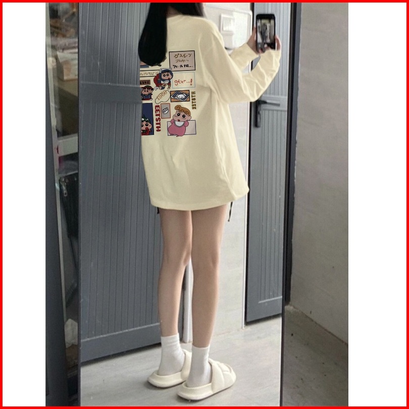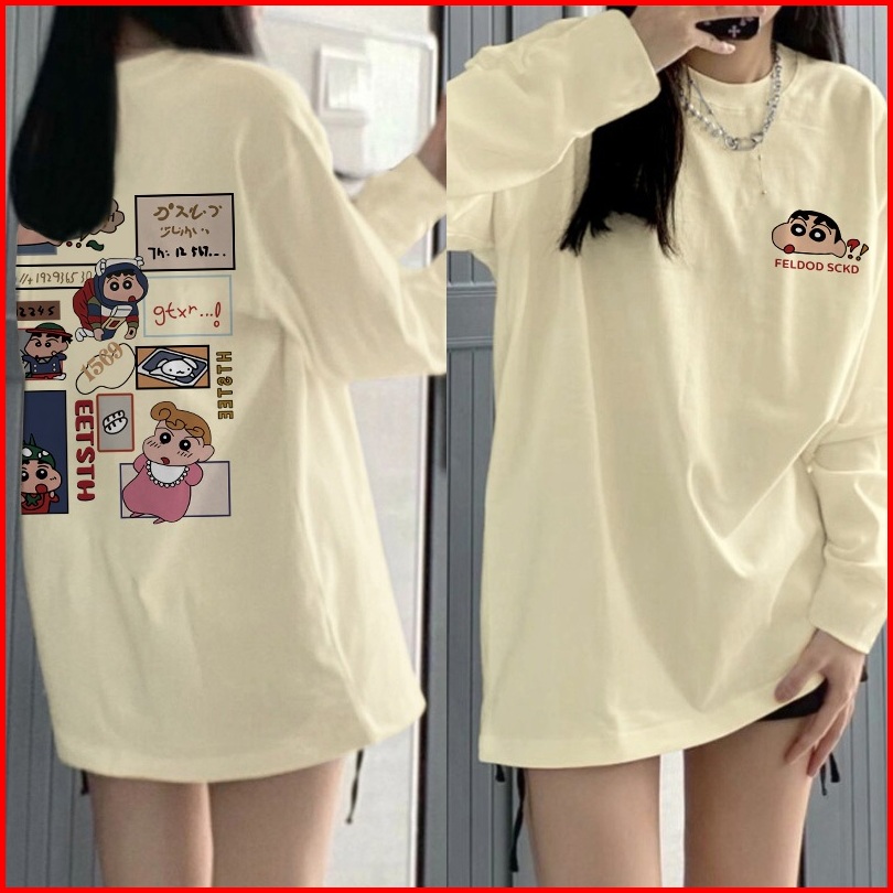 Kaos Oversize Lengan Panjang Wanita Korean Style Crayon Shin-chan Baju Kaos Lengan Panjang Wanita Terbaru Kekinian Atasa