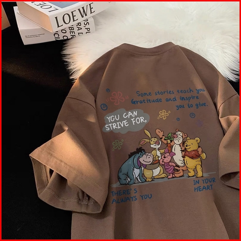 Yuyu Studio T-shirt Oversize Tigger And His Hood Friend Baju Atasan Lengan Pendek Wanita Kaos Oversize Terbaru Kaos Lucu