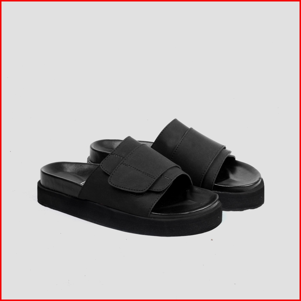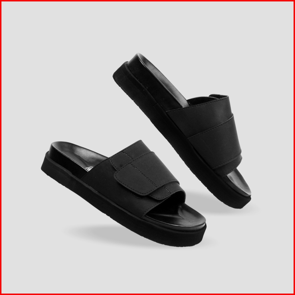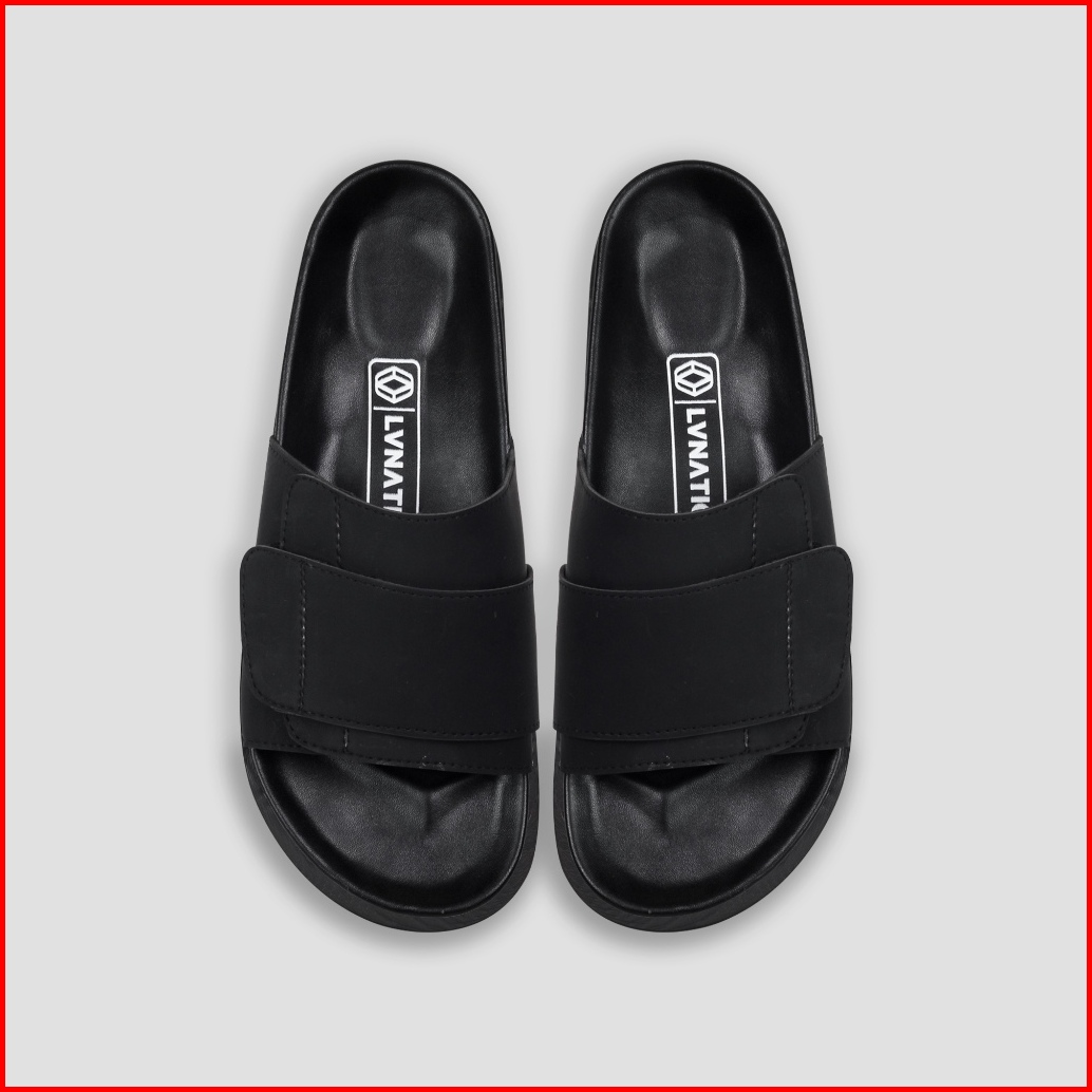 Lvnatica - Sandal Kasual Pria Alfred Full Black Klasik Vintage 38-45 Anti Slip Ringan