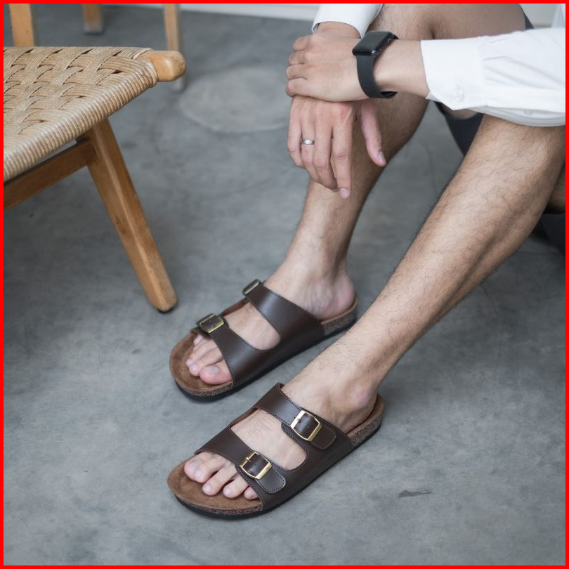 Cogen Sandal Pria Kulit Sendal Slop Birken Vintage - Opera Brown