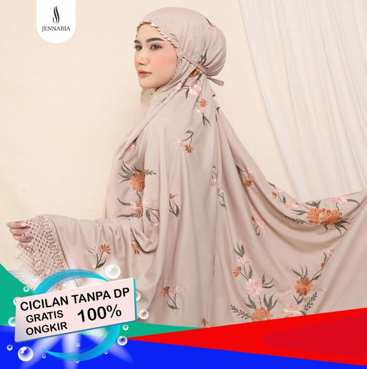 JENNABIA Mukena Dewasa Katun Renda Bordir Mewah Premium Sabria