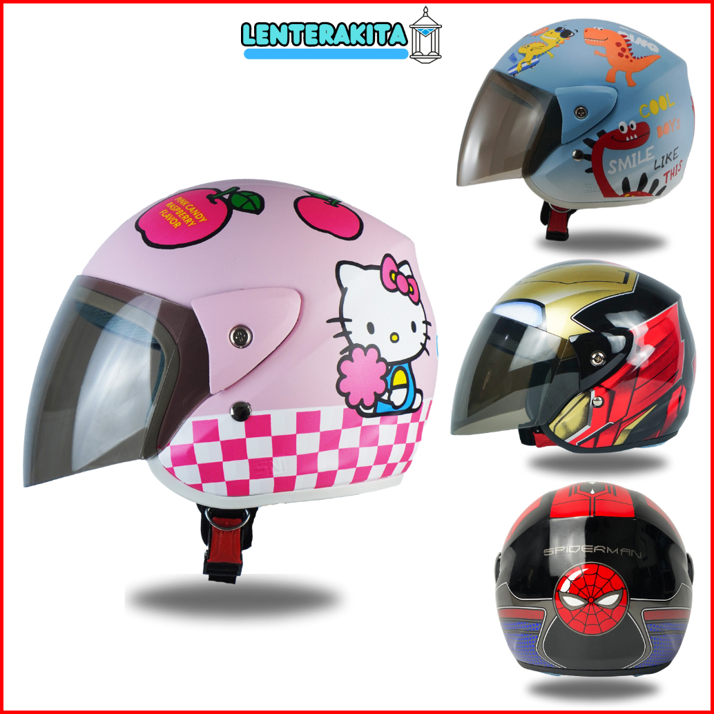 Helm Bogo Retro Anak Usia 2 3 4 5 6 7 8 Motif Kartun Sni Terbaru