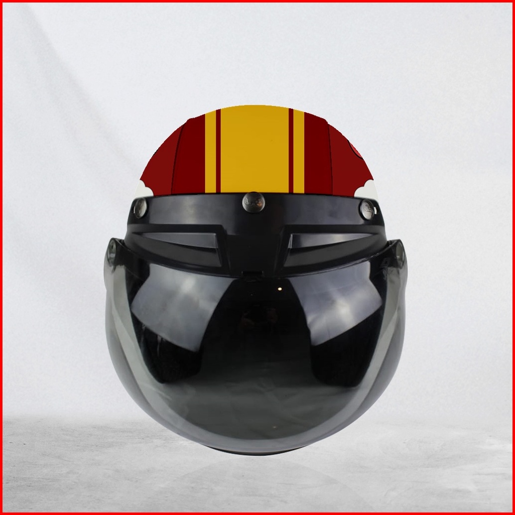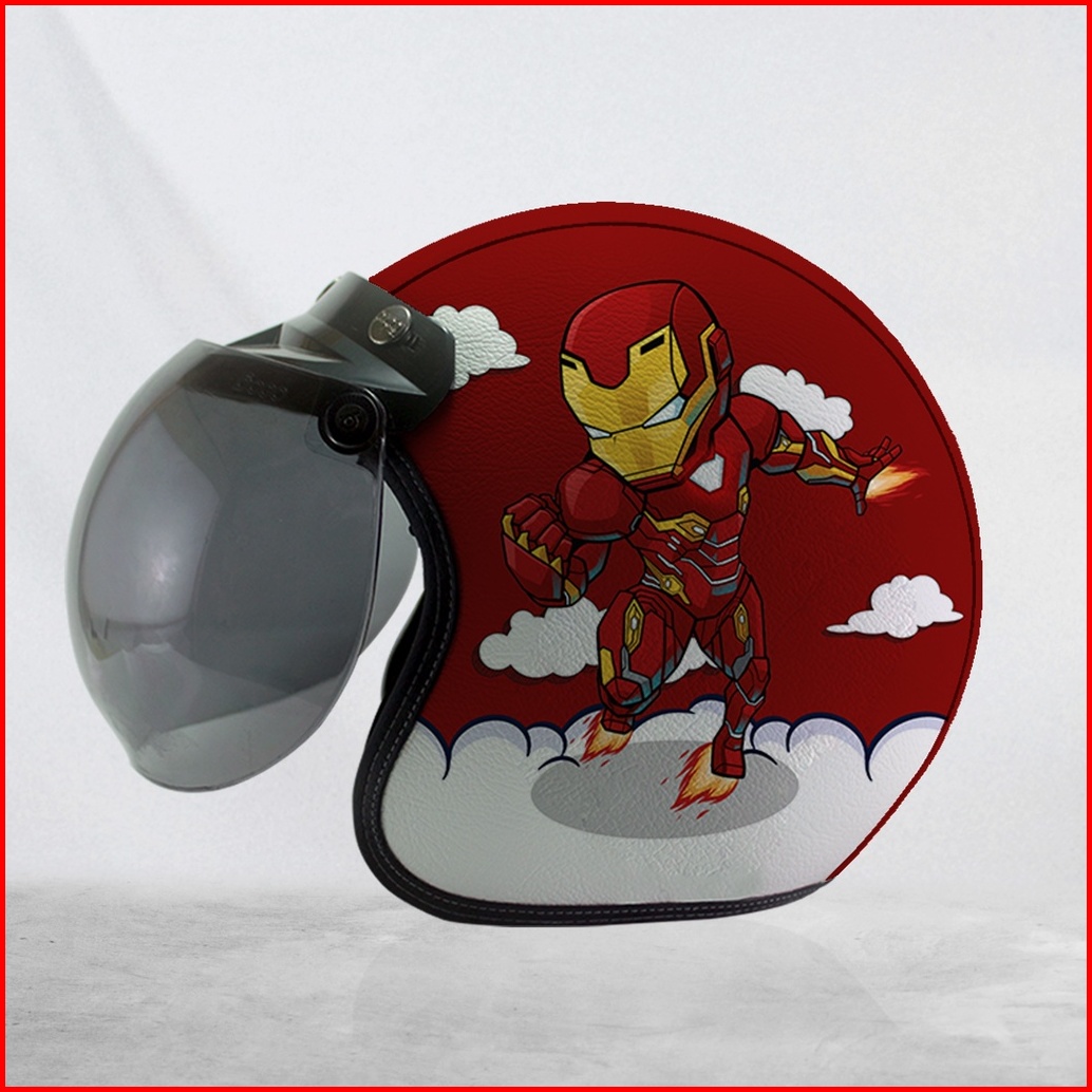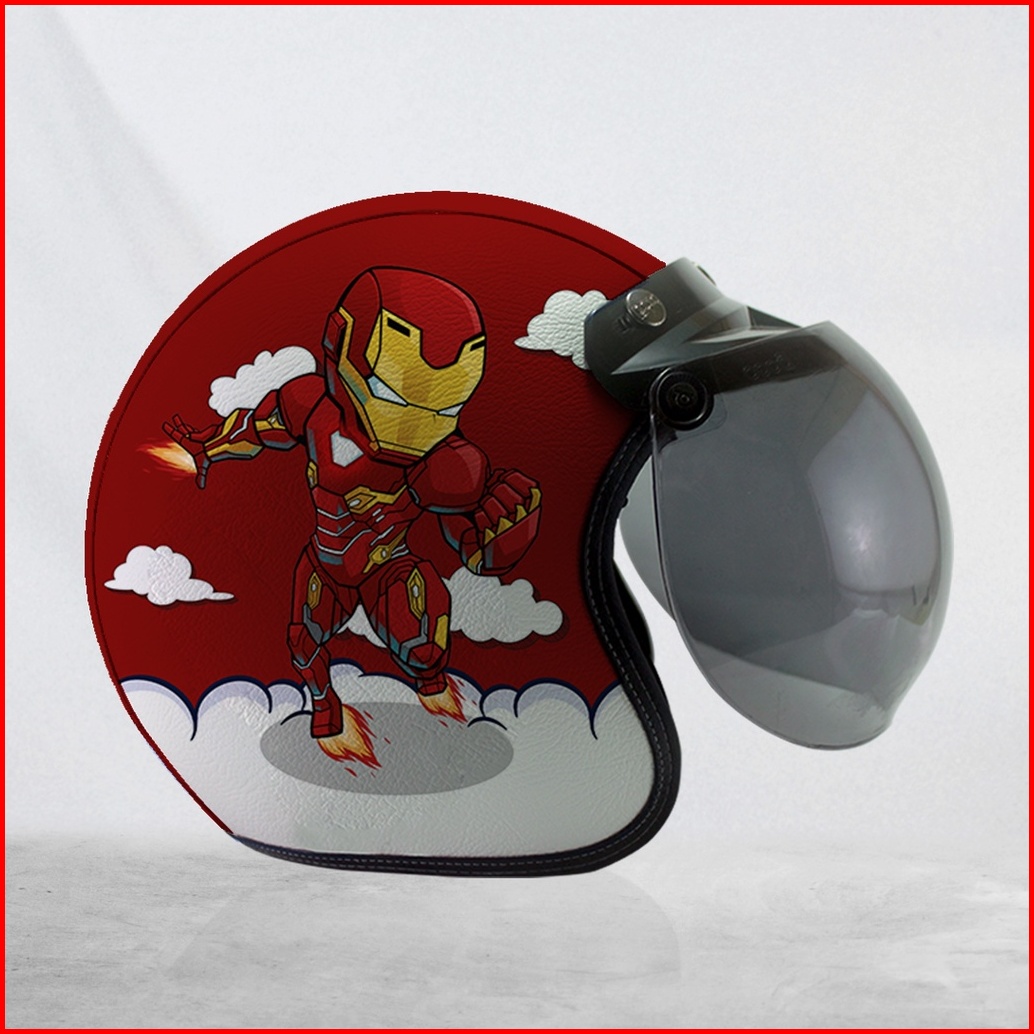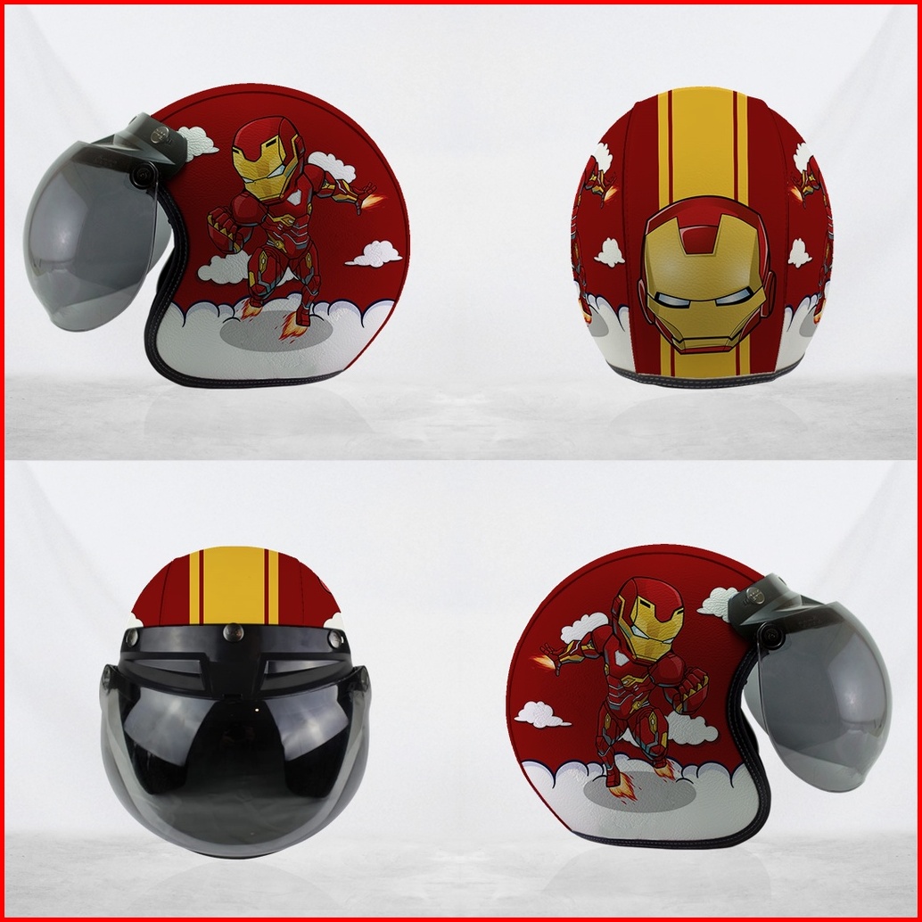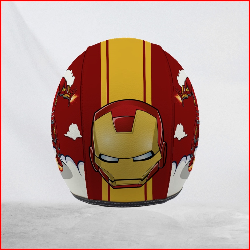 Helm Bogo Retro Kulit Dewasa Anak-anak Iron Man Merah Kuning Free Tambah Nama