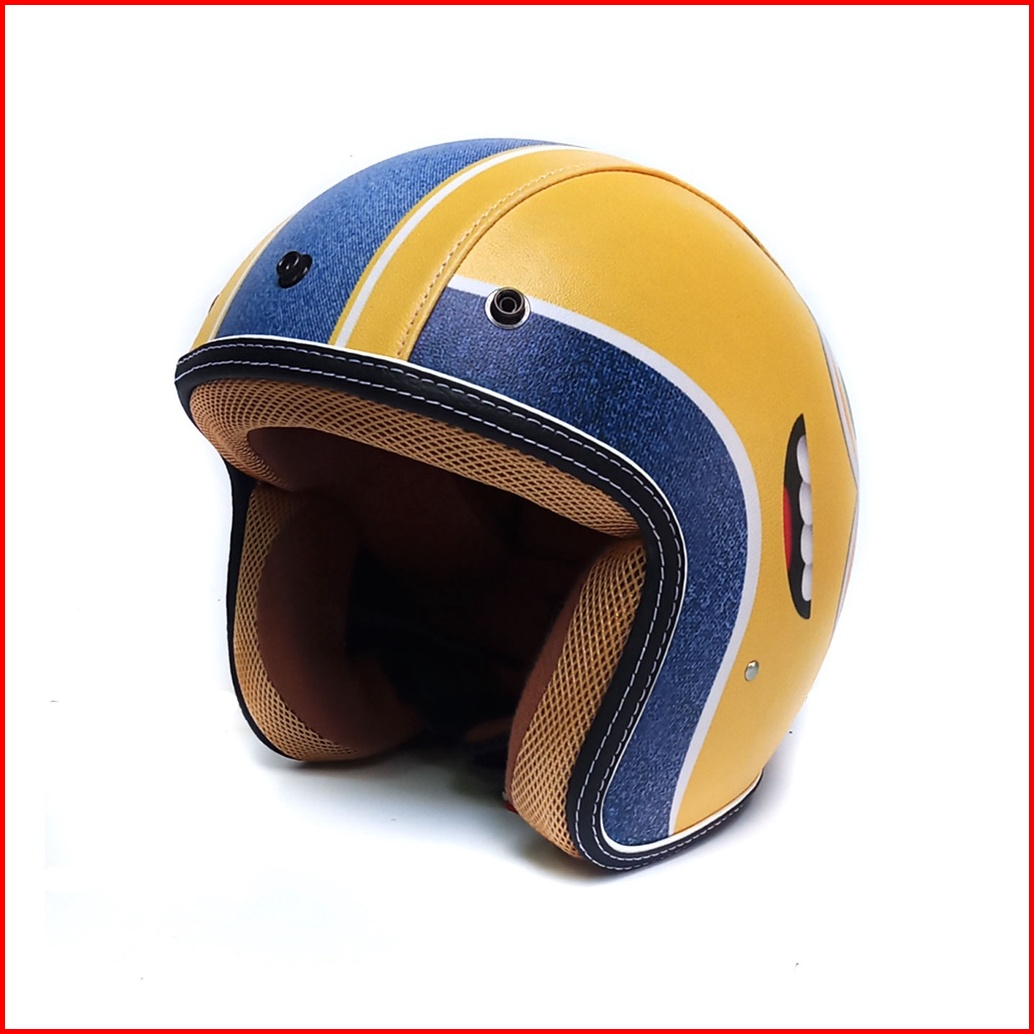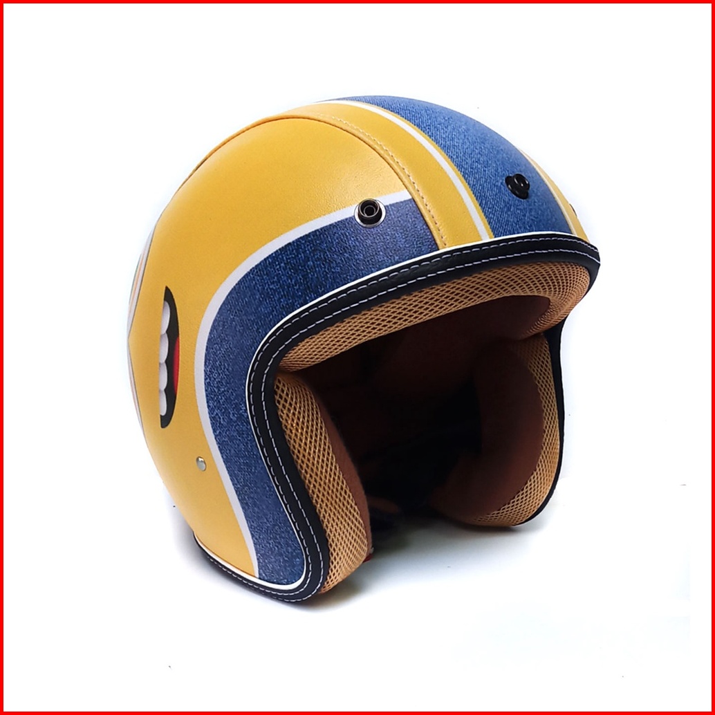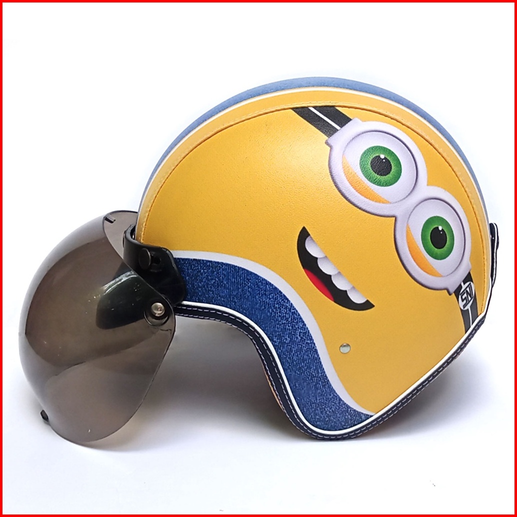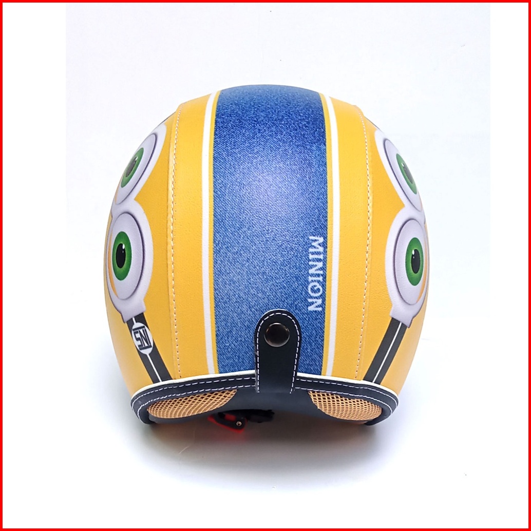 Helm Bogo Retro Kulit Dewasa Full Leher Dewasa Pria Wanita Murah Helm Motif Minion Allsize Lingkar Kepala 58-61cm