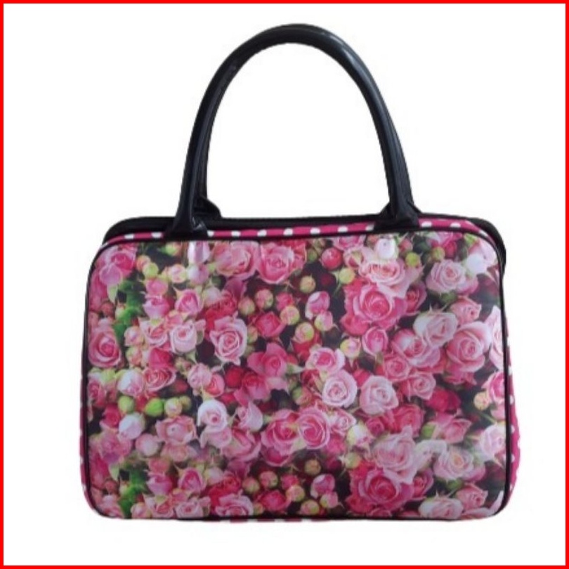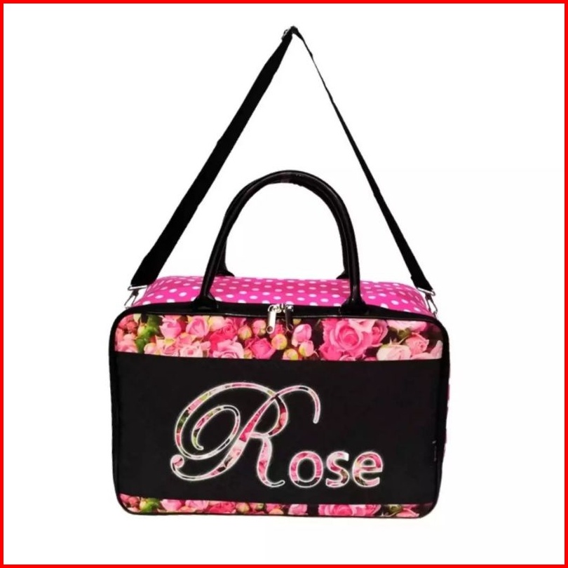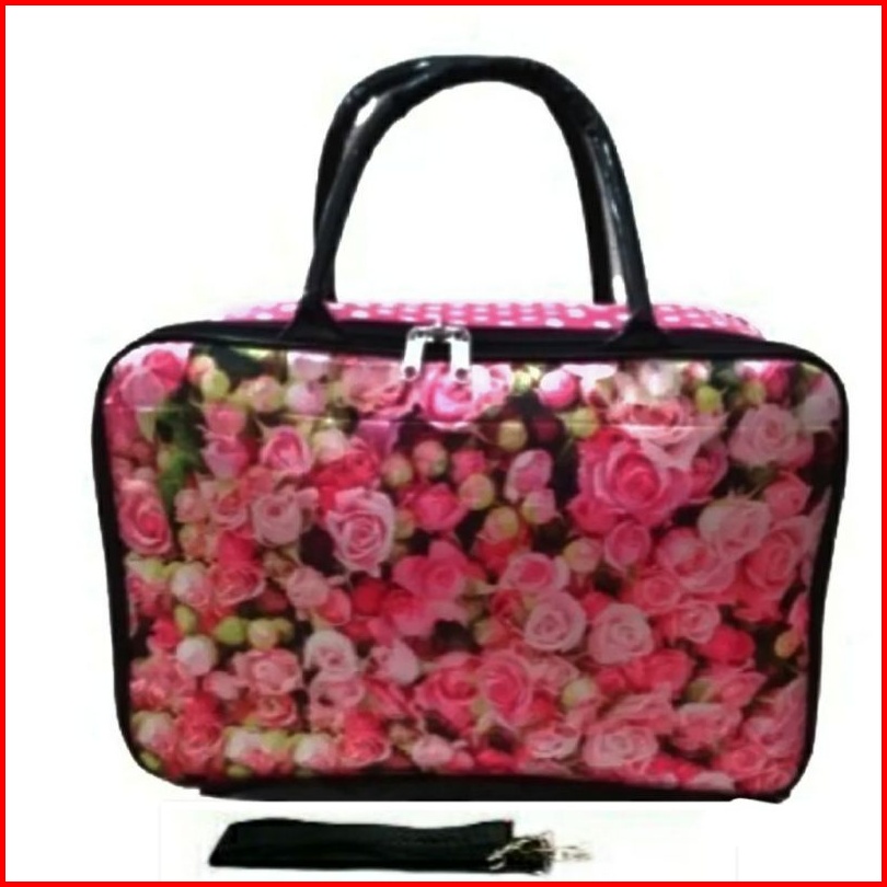 Tas Travel Rose Pink Kanvas Tebal Tali Panjang Selempang Jaring Dalam Tali Ikat Dalam Complete