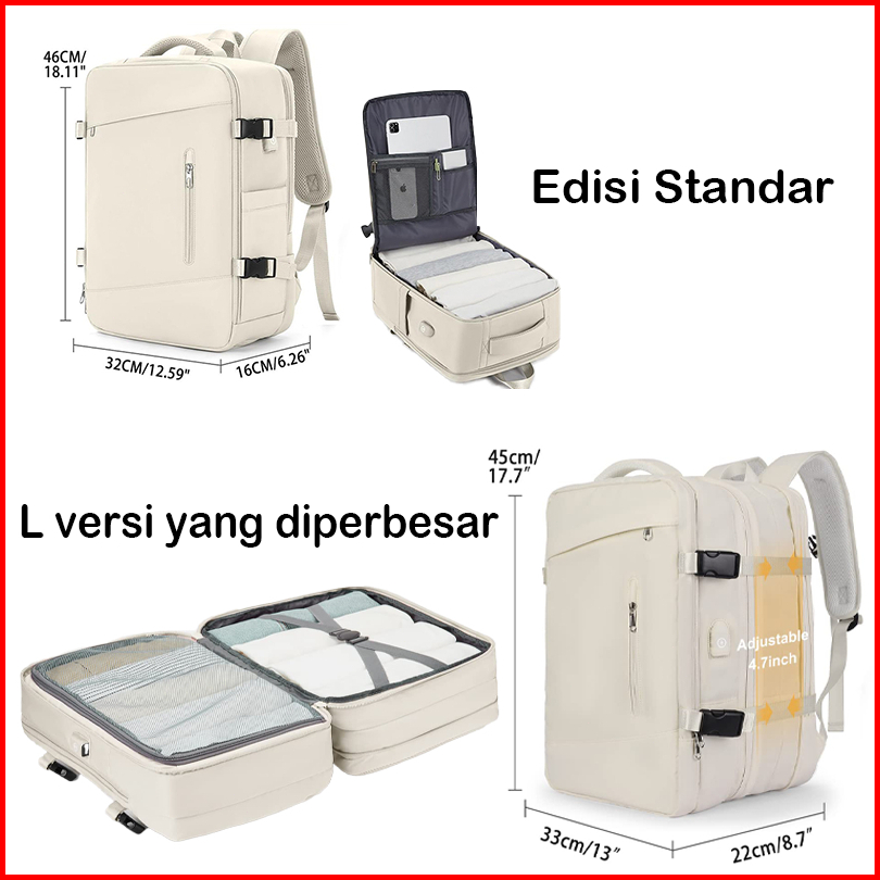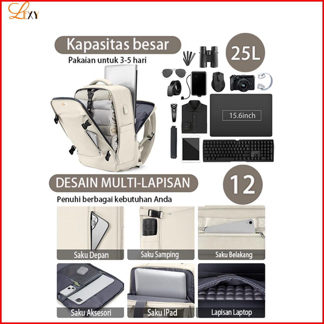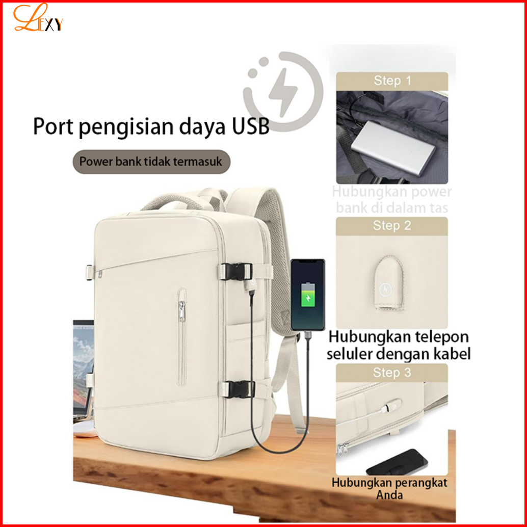 Lexy Tas Ransel Traveling Wanita Tahan Air Berkapasitas Besar Dengan Kompartemen Sepatu Dan Port Usb