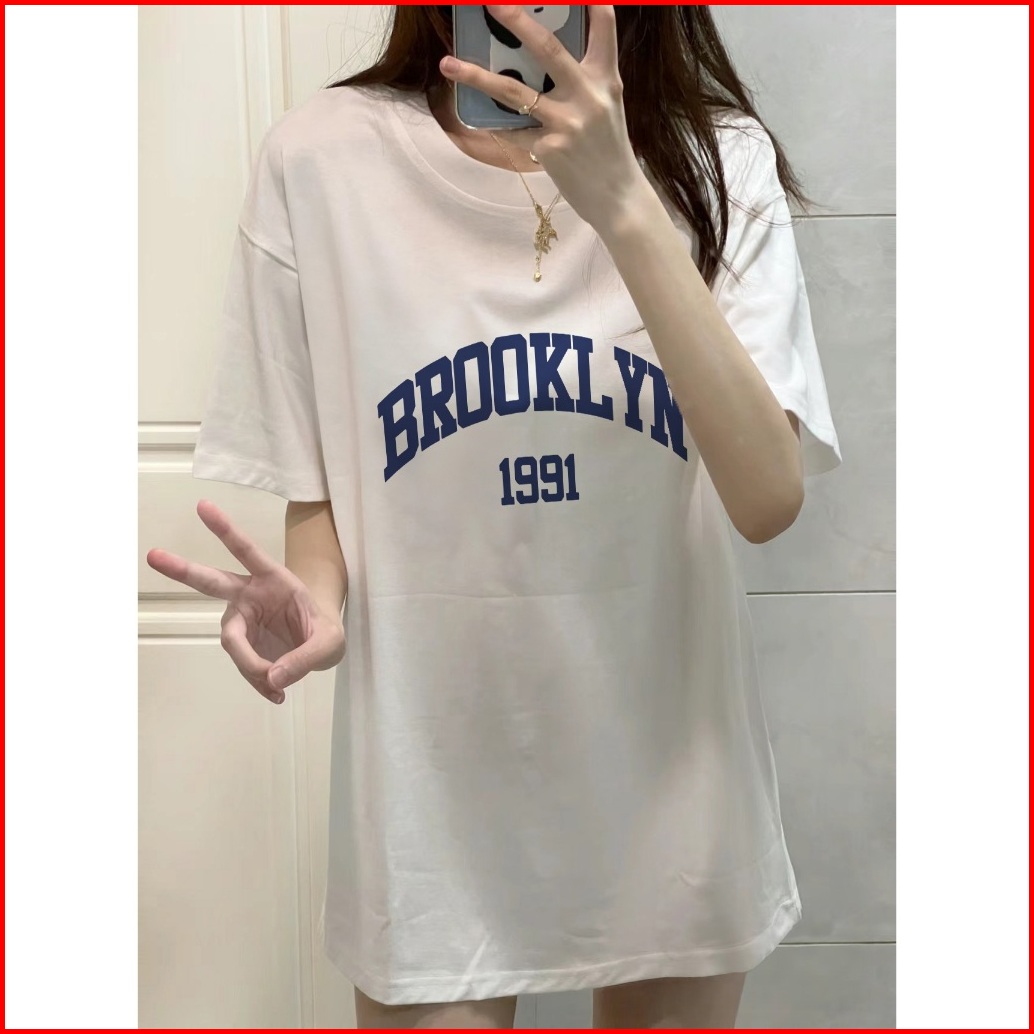 Po Floret Putih Kaos Oversize Blue Letters 1991 Korean Style Wanita Baju Atasan Wanita Terbaru